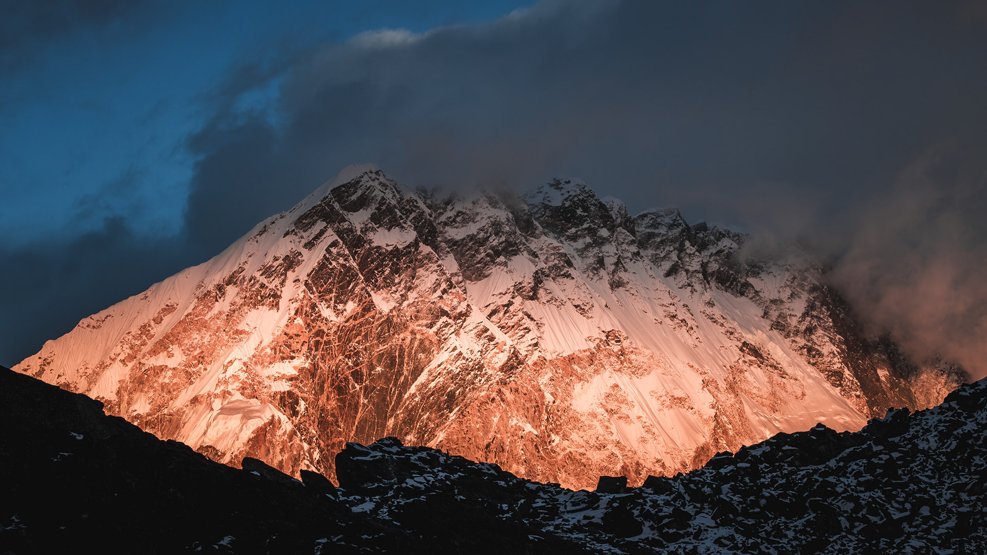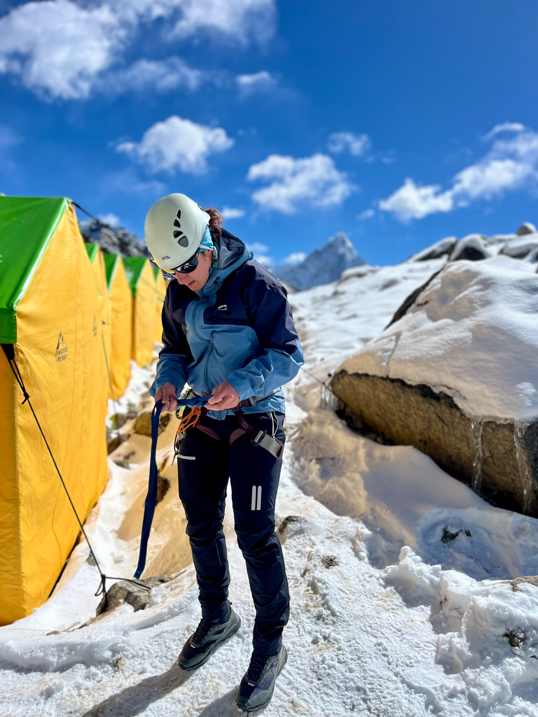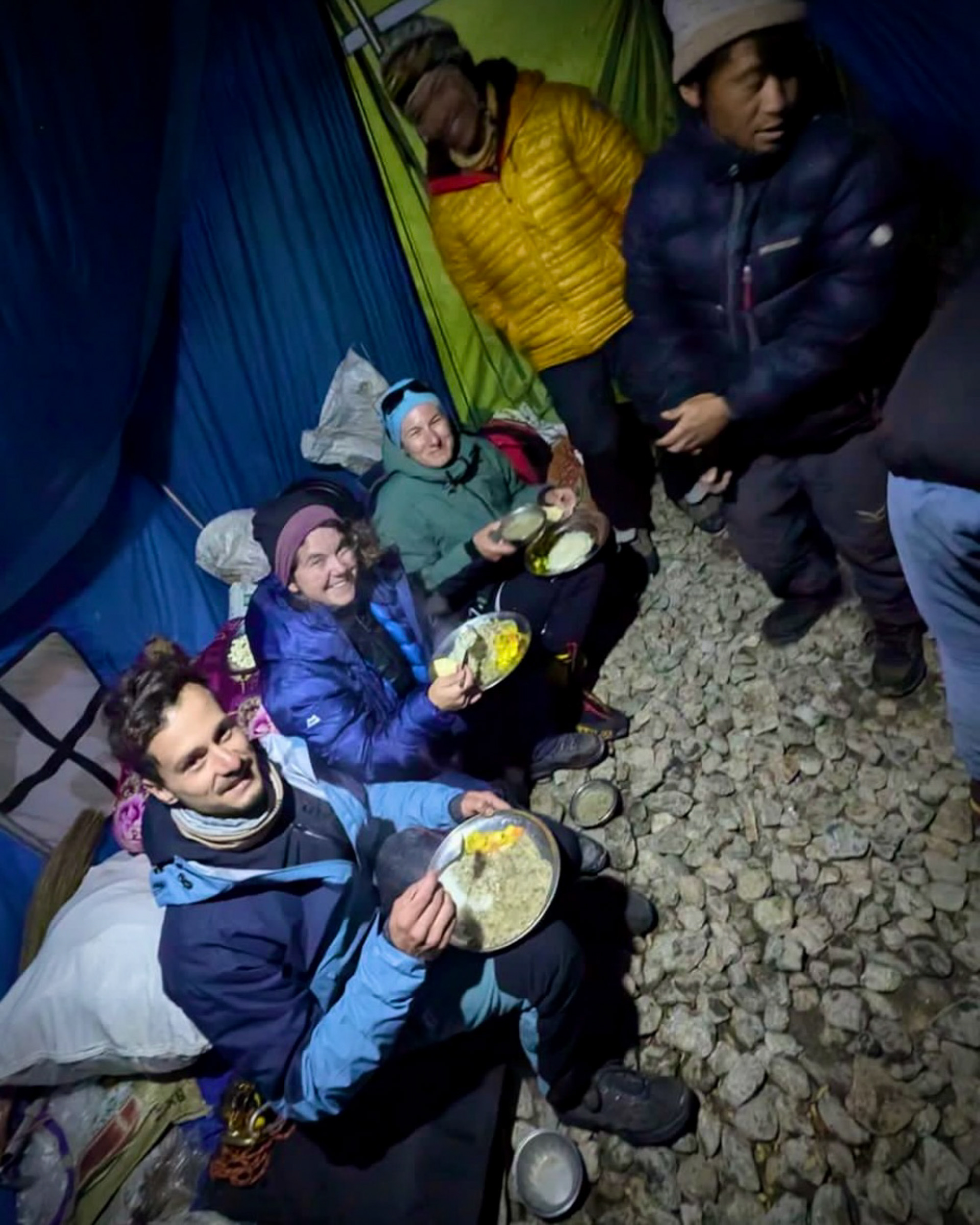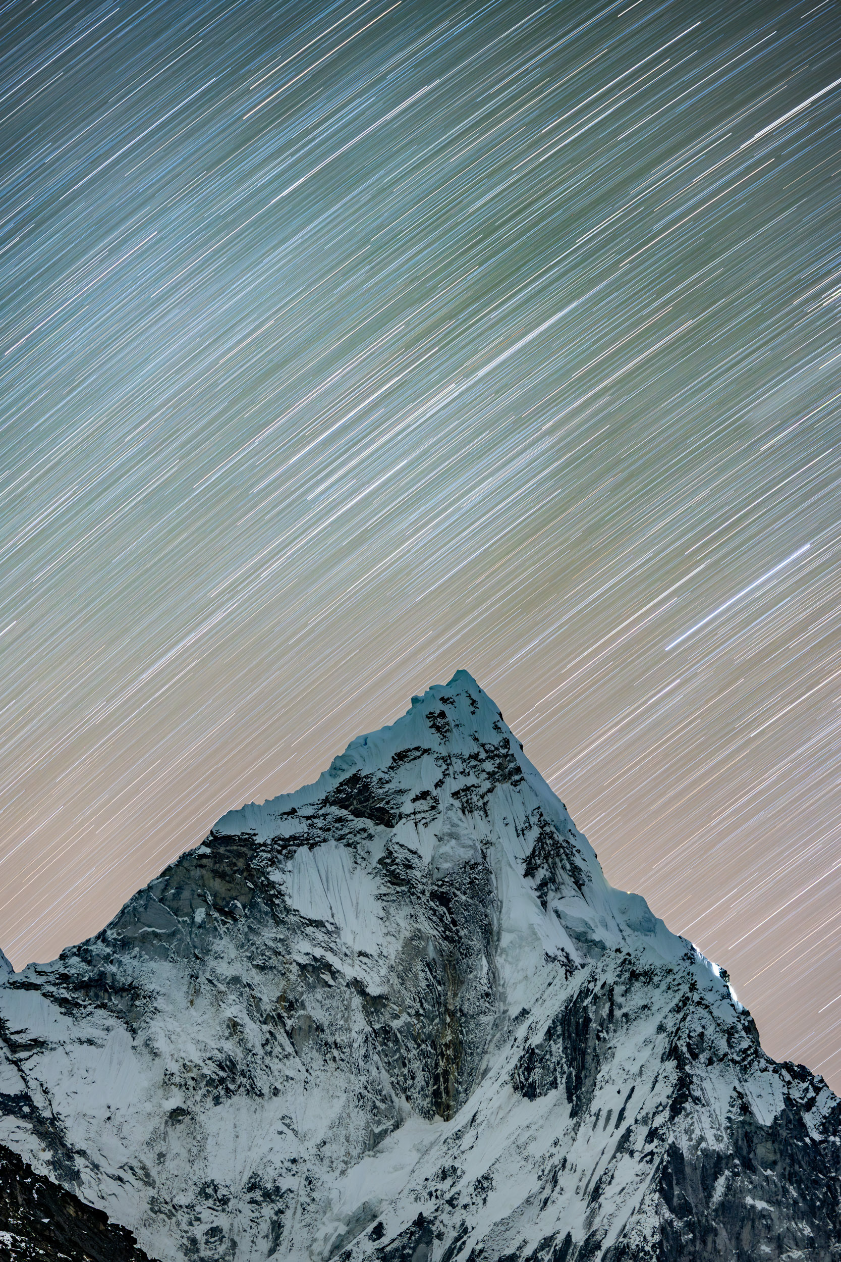 Im Lobuche High Camp auf 5200 m werden die letzten Vorbereitungen für den Gipfelaufstieg um Mitternacht getroffen. Leider haben mir Fieber und der Schlafmangel der letzten Nächte zu schaffen gemacht und ich beschließe - sehr schweren Herzens - den Gipfel nicht zu besteigen. Ich bleibe im High Camp, jedoch bereue ich die Entscheidung keineswegs. Nervös, bei Eiseskälte und in Gedanken bei meinen Kolleginnen krieche ich mitten in der Nacht aus dem Zelt, um sie beim nächtlichen Aufstieg zu beobachten. Mein Blick wandert hoch zu den schimmernden Schneeflanken, über mir werde ich vom sternenklarsten Nachthimmel, den ich jemals gesehen habe, fast geblendet. Die einzige Lichtverschmutzung erzeugen die Stirnlampen am Berg, die sich langsam hintereinander in Richtung Gipfel bewegen. Es könnte kaum kitschiger sein: während ich zu ihnen hinaufblicke und den Bergsteigern innerlich Glück wünsche, verglüht über ihren Köpfen ein Meteor in der Atmosphäre, den meine Kamera als Teil eines Zeitraffers einfängt.
