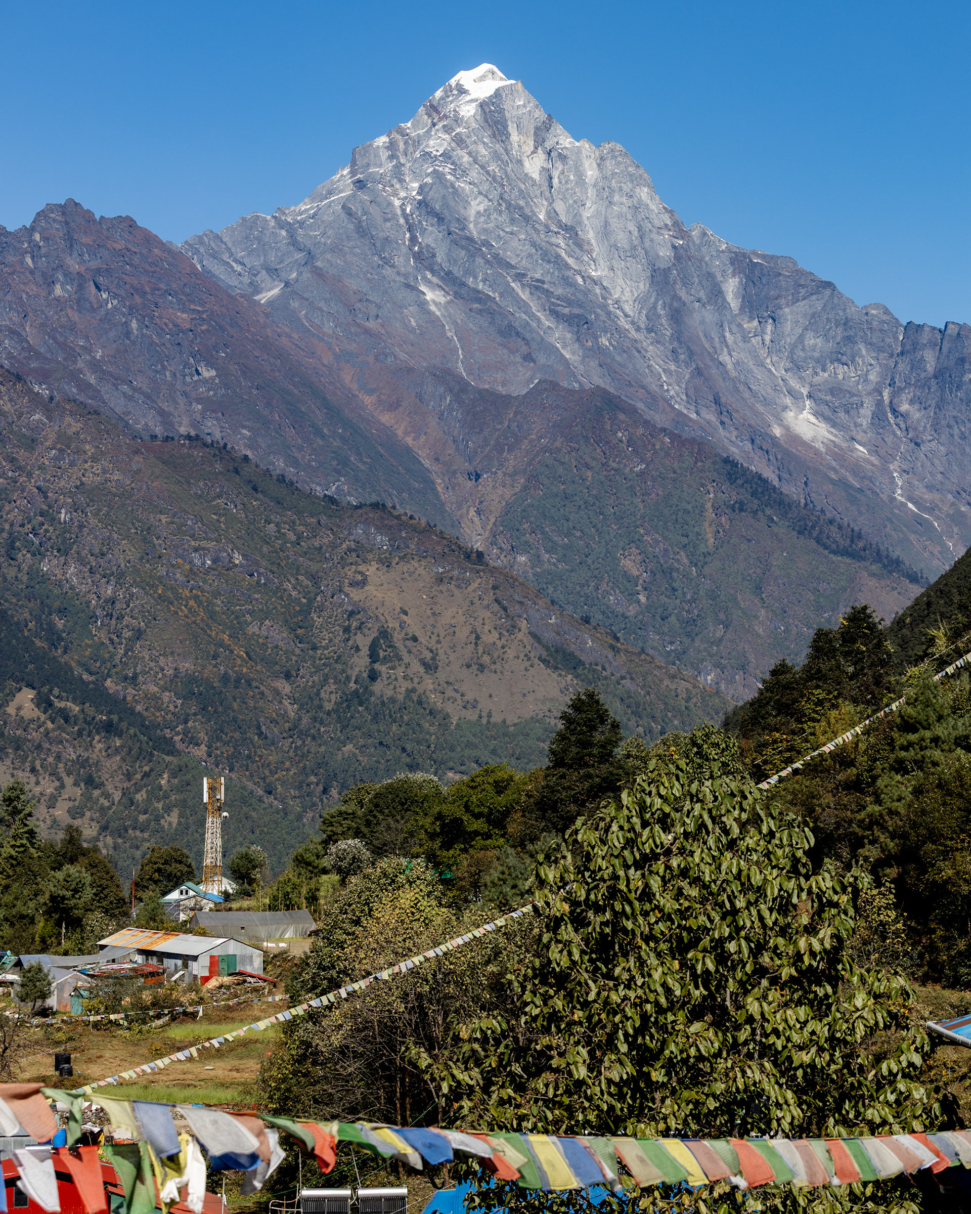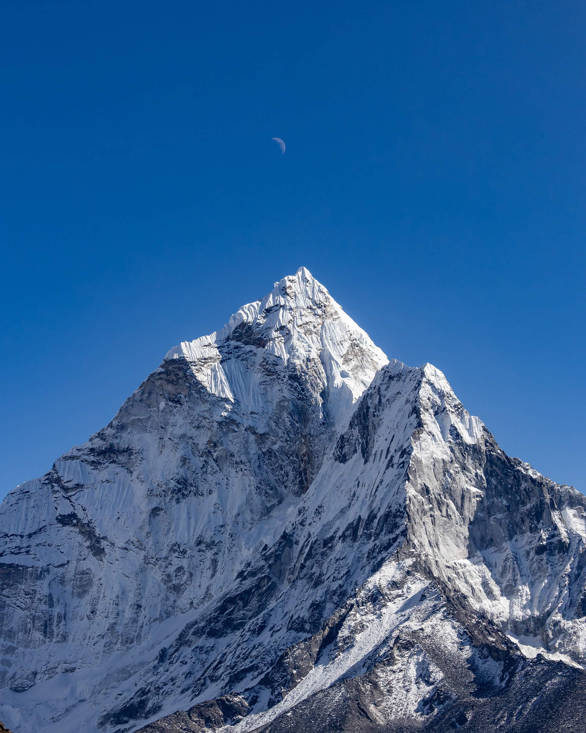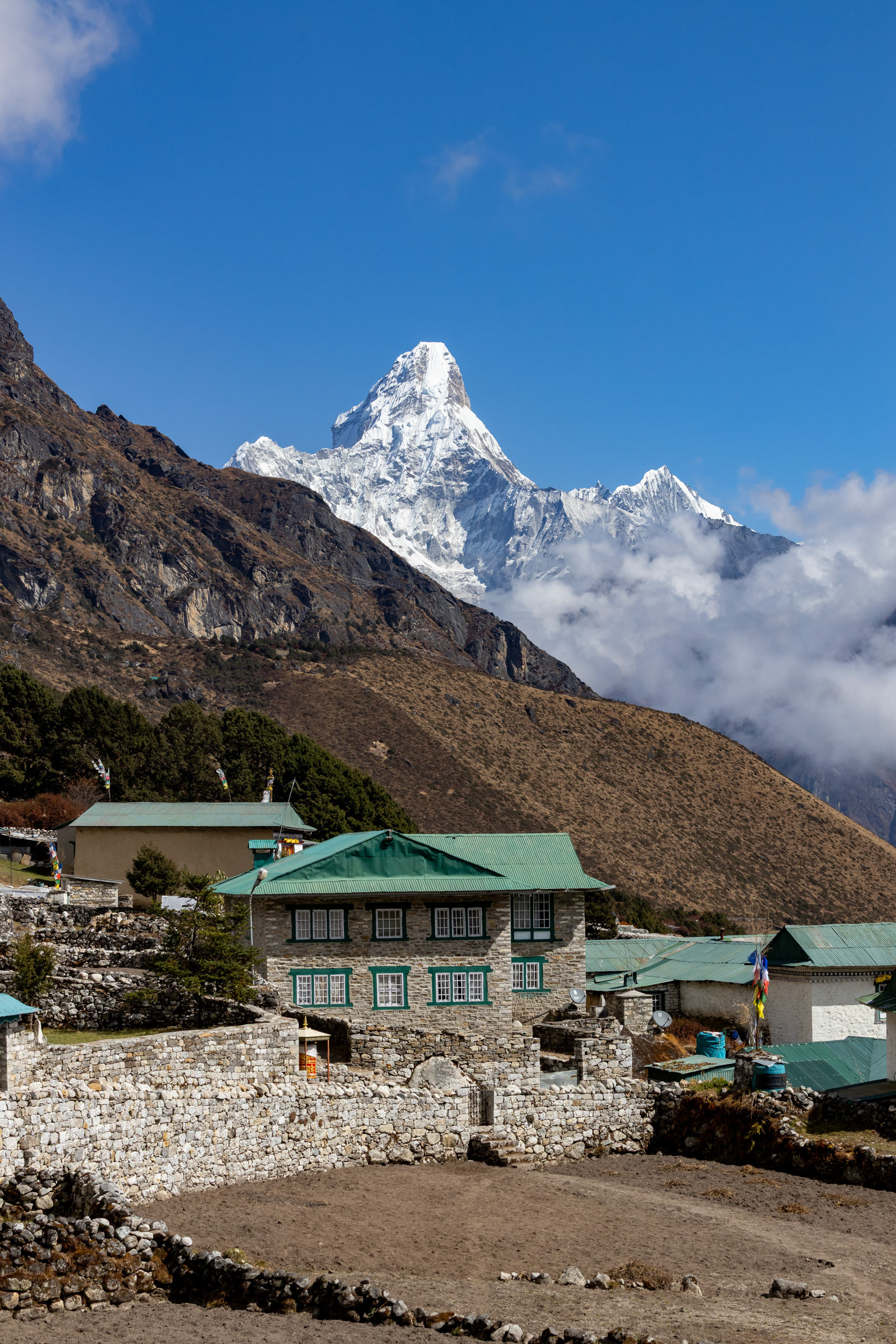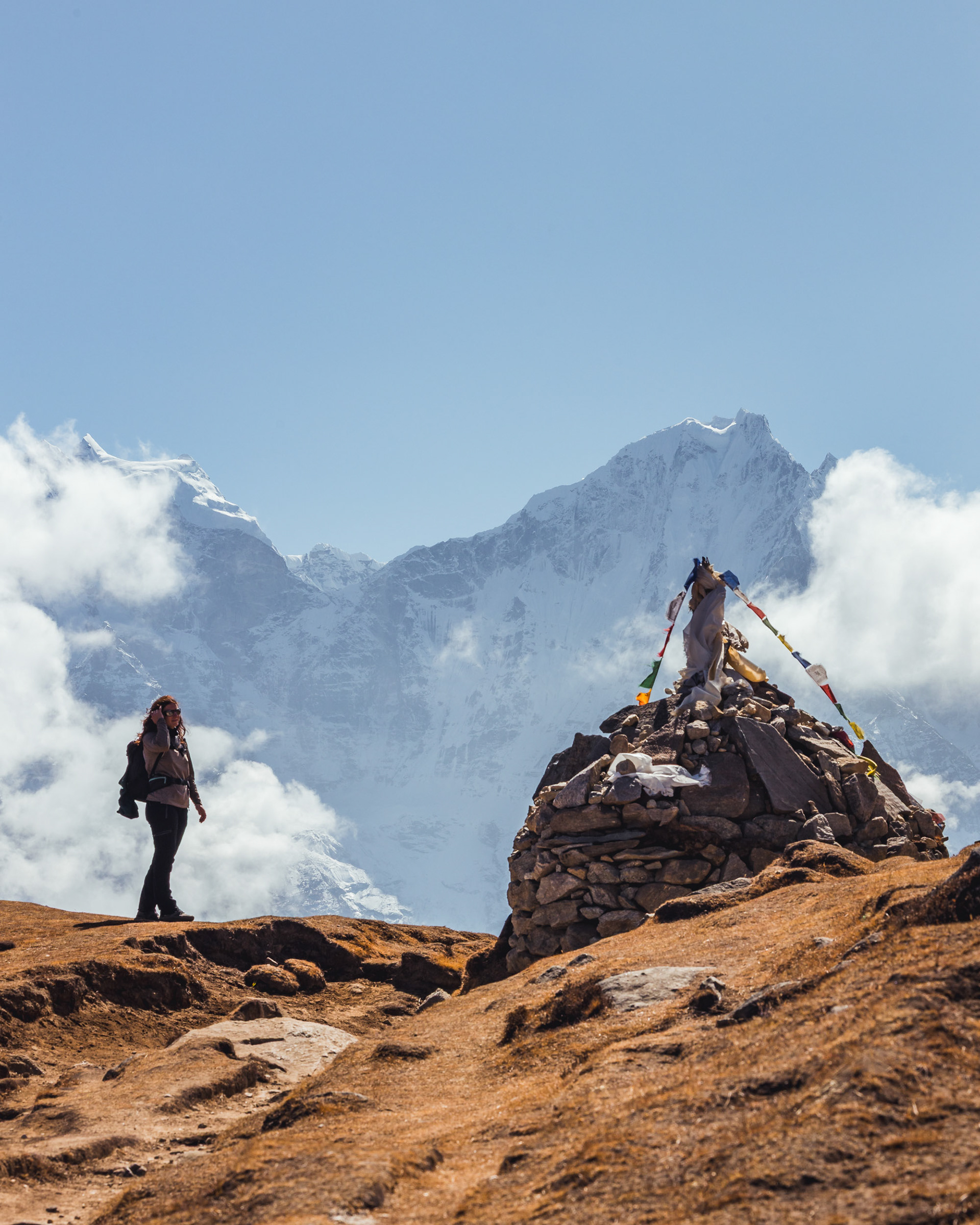 Jeder einzelne der Berge scheint eine unglaubliche Macht zu besitzen, monumental und unveränderbar. Dann, fast unerwartet, sehen wir ihn zum ersten Mal aus der Ferne: Der Mt. Everest mit seinen stolzen 8848m Metern. Jedoch scheint Größe nicht alles zu sein: mit seinen "nur" 6814m zieht der Ama Dablam meinen Blick viel eher an und stiehlt jedem anderen Gipfel die Show. Nicht umsonst wird er das „Matterhorn Nepals“ genannt.