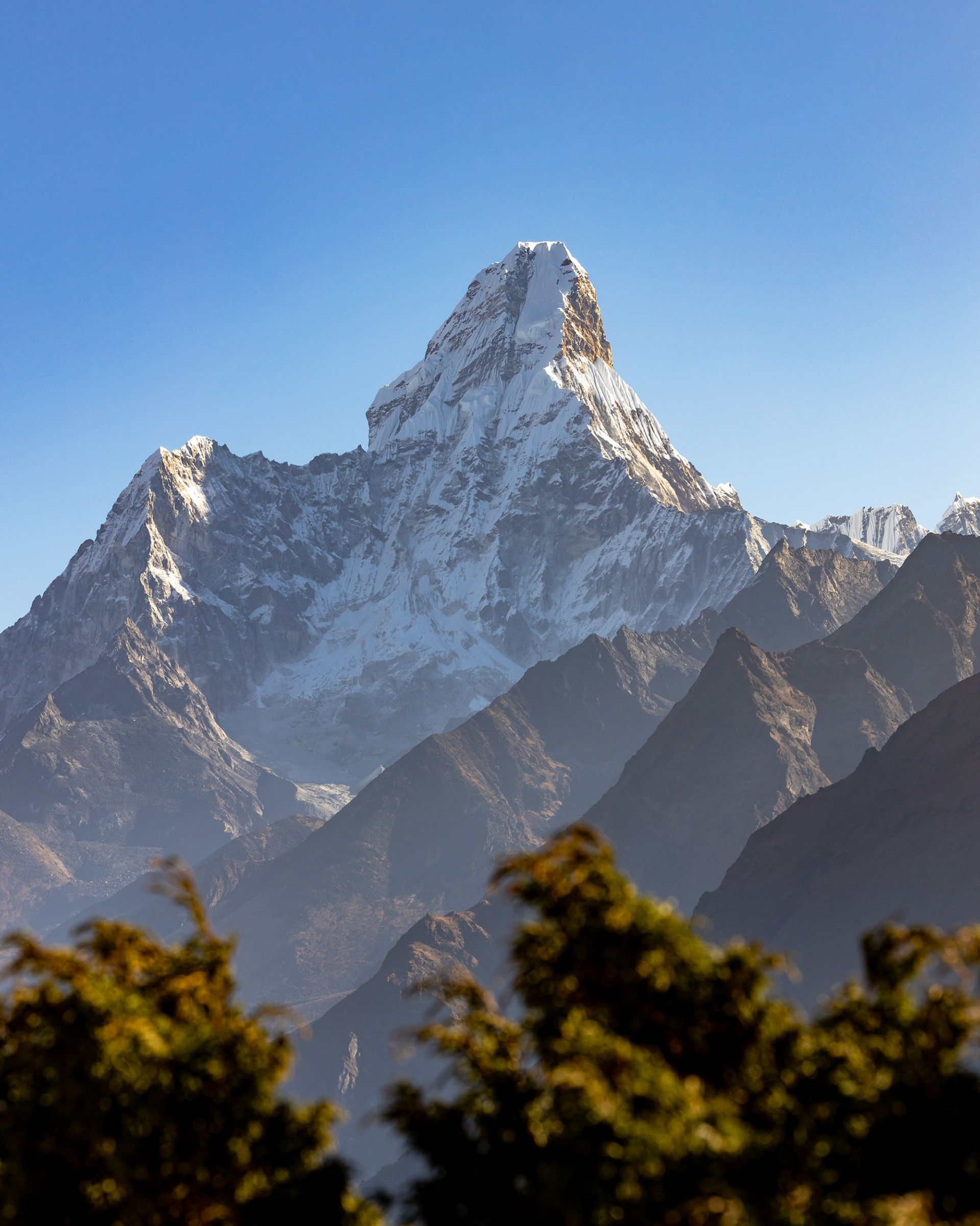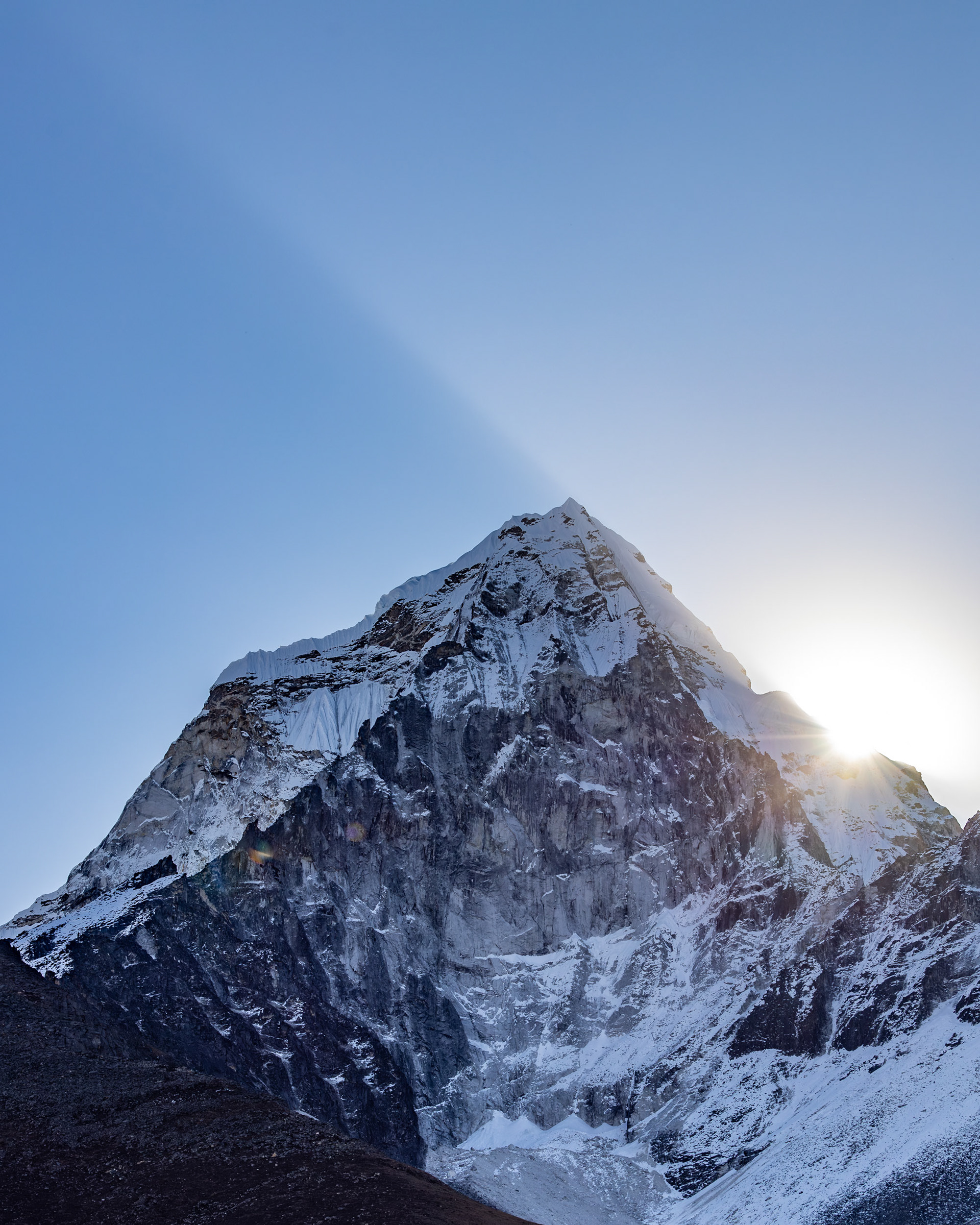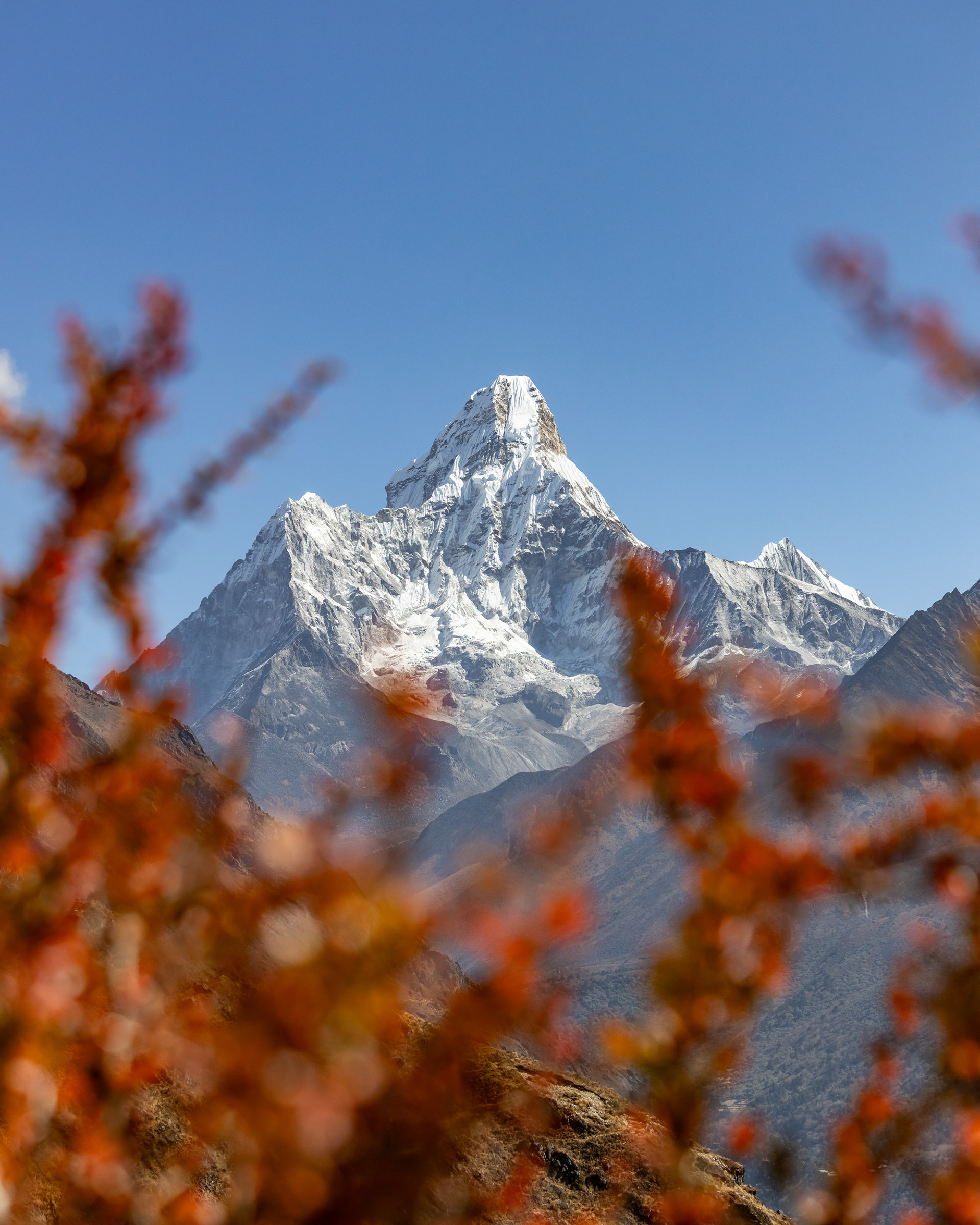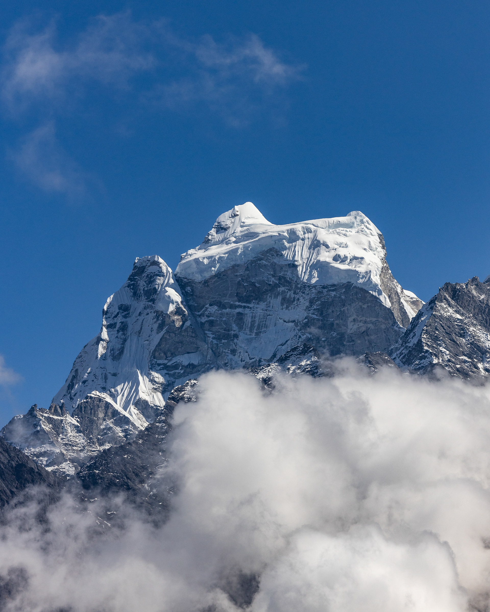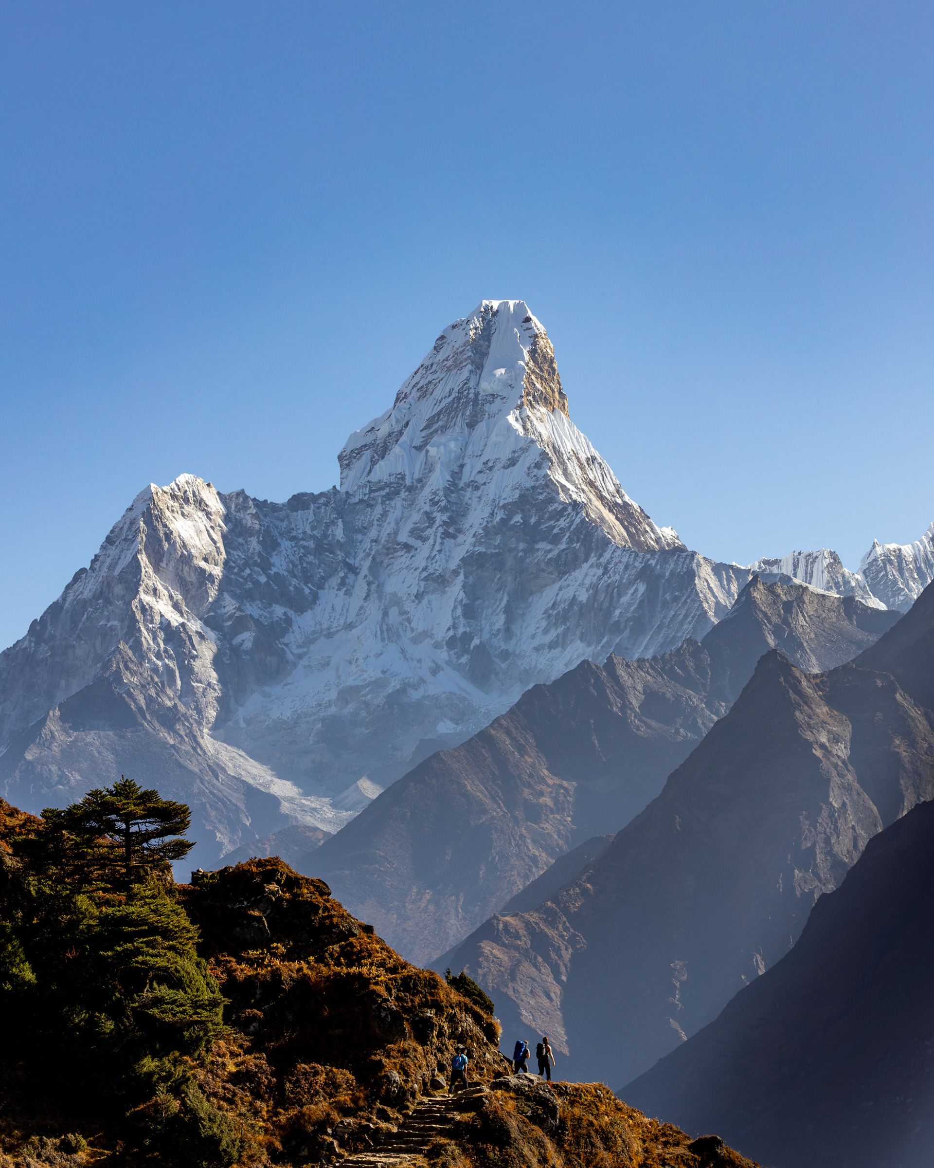 Jeder einzelne der Berge scheint eine unglaubliche Macht zu besitzen, monumental und unveränderbar. Dann, fast unerwartet, sehen wir ihn zum ersten Mal aus der Ferne: Der Mt. Everest mit seinen stolzen 8848m Metern. Jedoch scheint Größe nicht alles zu sein: mit seinen "nur" 6814m zieht der Ama Dablam meinen Blick viel eher an und stiehlt jedem anderen Gipfel die Show. Nicht umsonst wird er das „Matterhorn Nepals“ genannt.