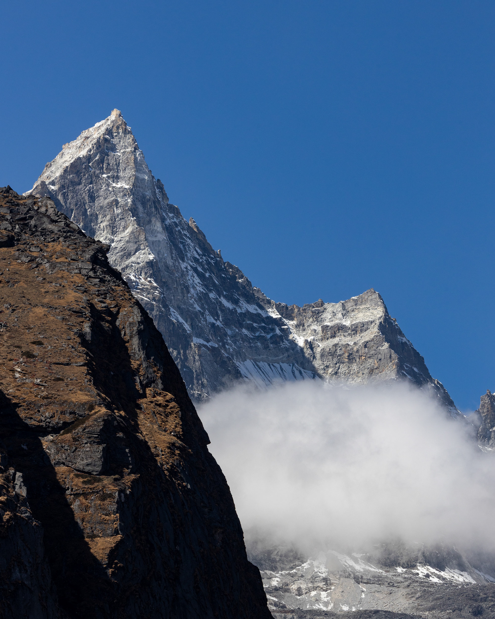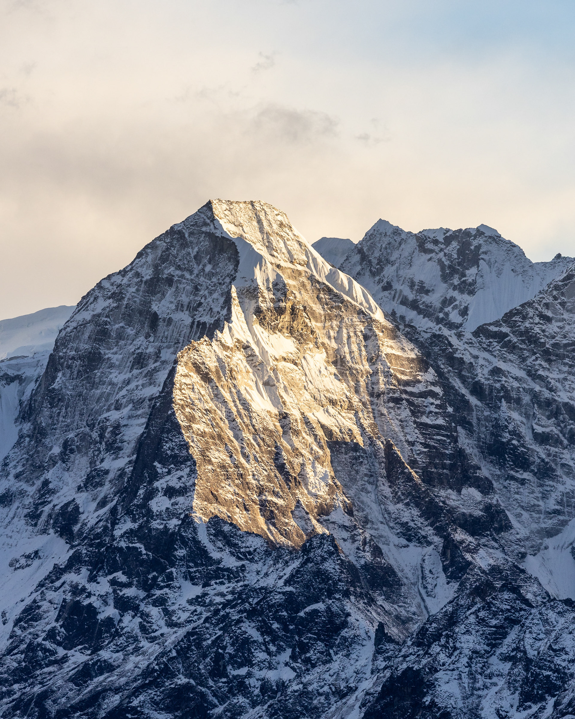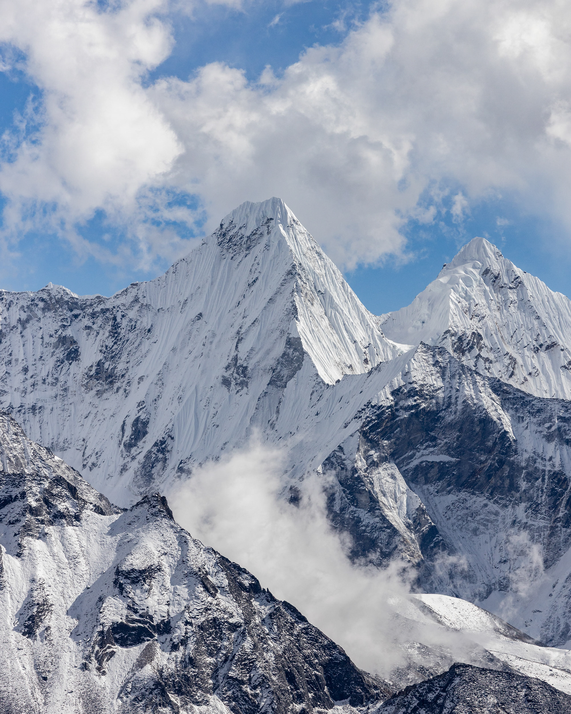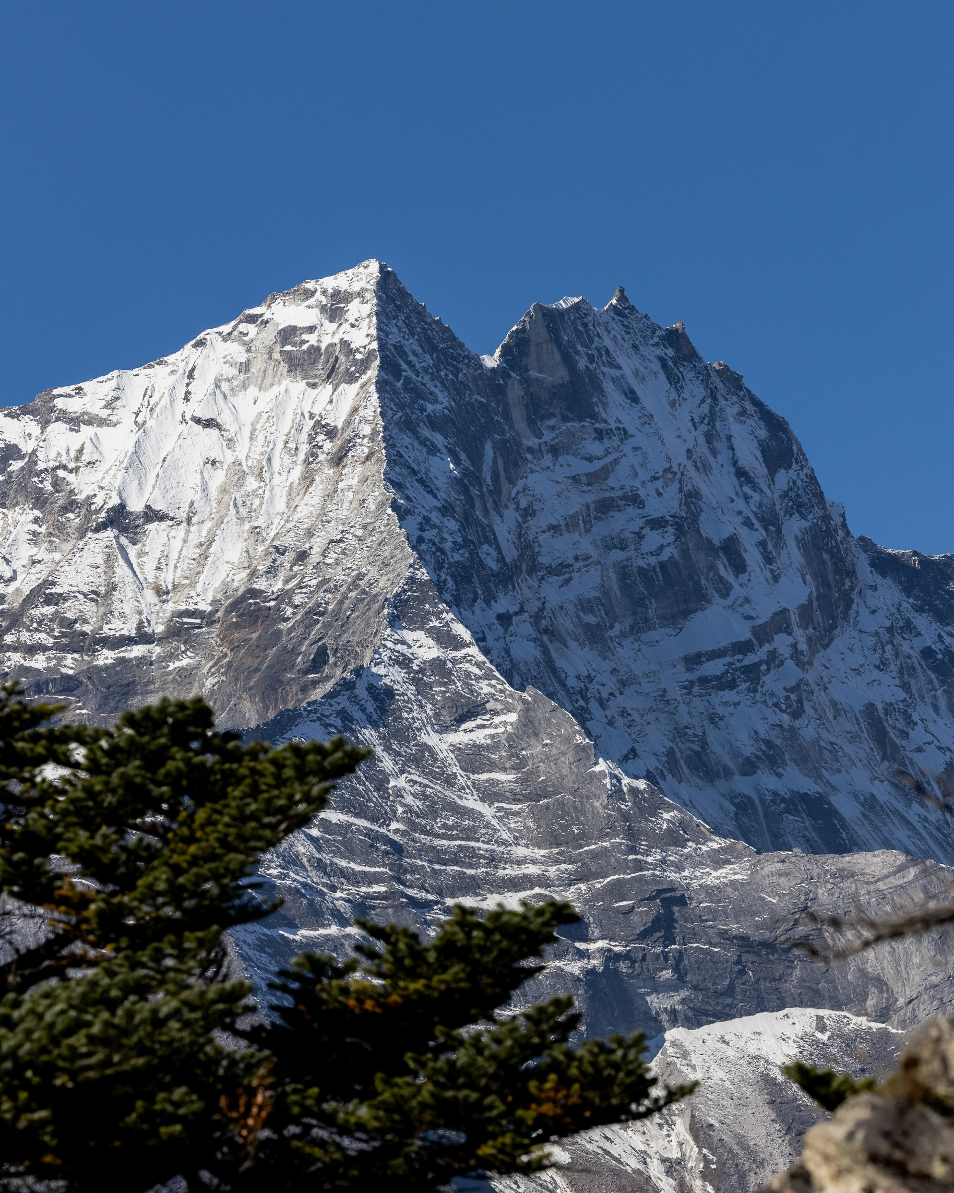 Jeder einzelne der Berge scheint eine unglaubliche Macht zu besitzen, monumental und unveränderbar. Dann, fast unerwartet, sehen wir ihn zum ersten Mal aus der Ferne: Der Mt. Everest mit seinen stolzen 8848m Metern. Jedoch scheint Größe nicht alles zu sein: mit seinen "nur" 6814m zieht der Ama Dablam meinen Blick viel eher an und stiehlt jedem anderen Gipfel die Show. Nicht umsonst wird er das „Matterhorn Nepals“ genannt.