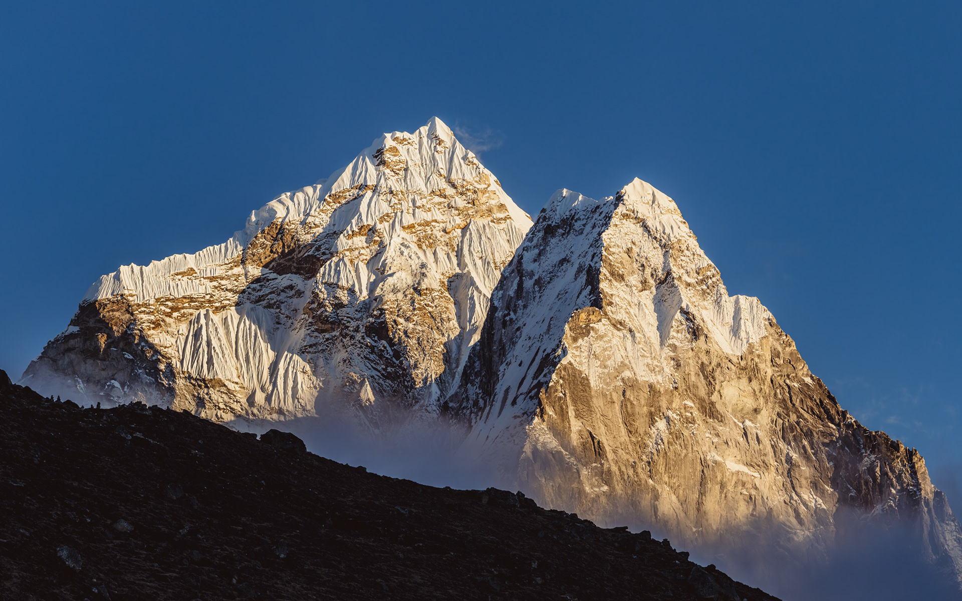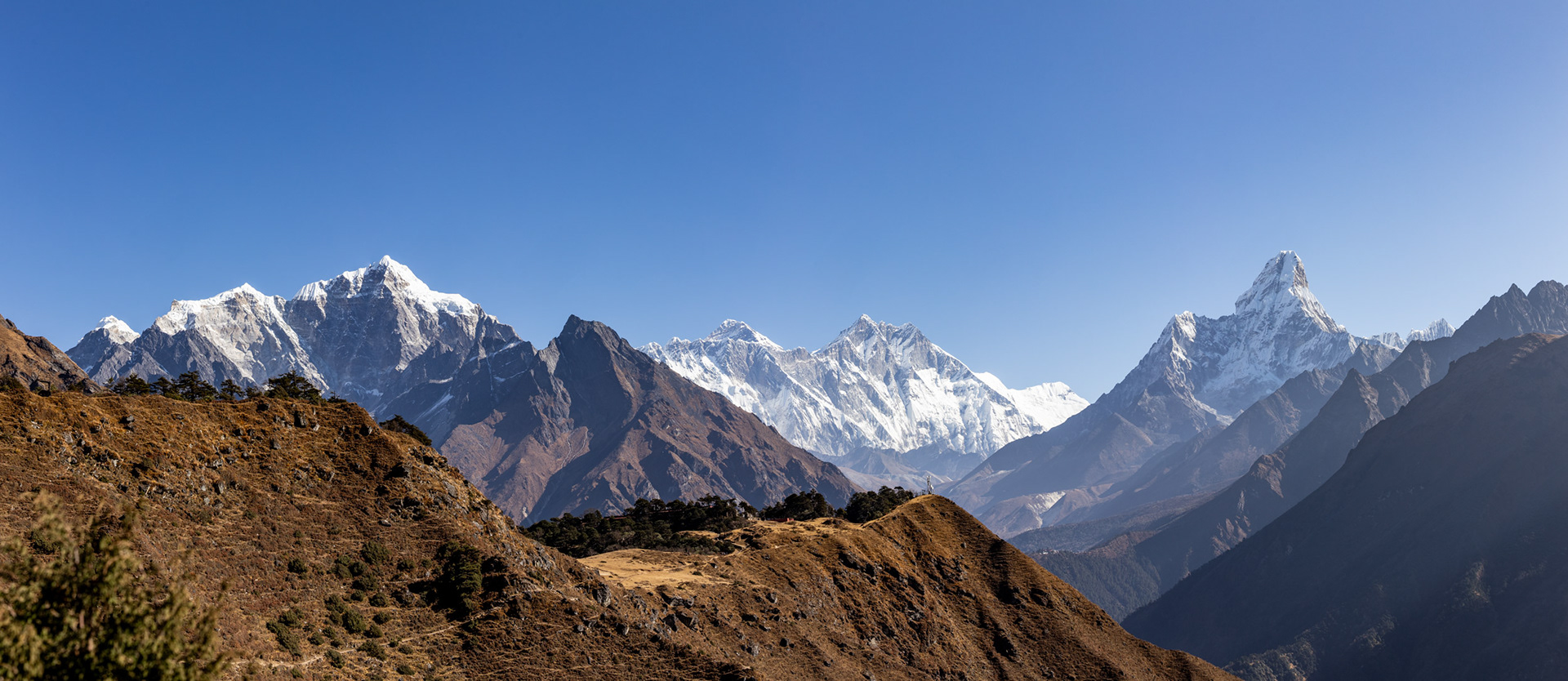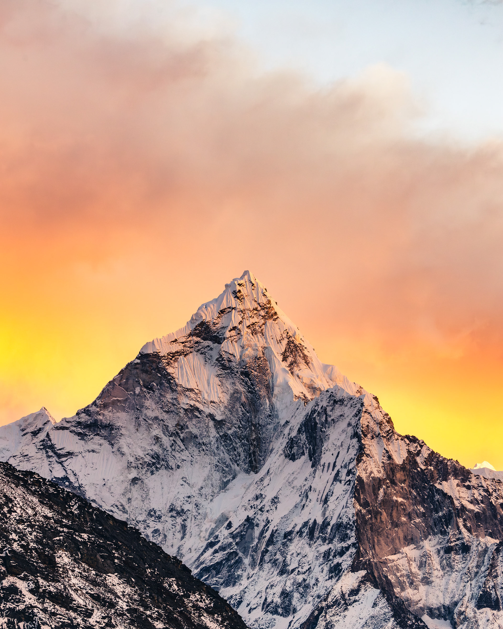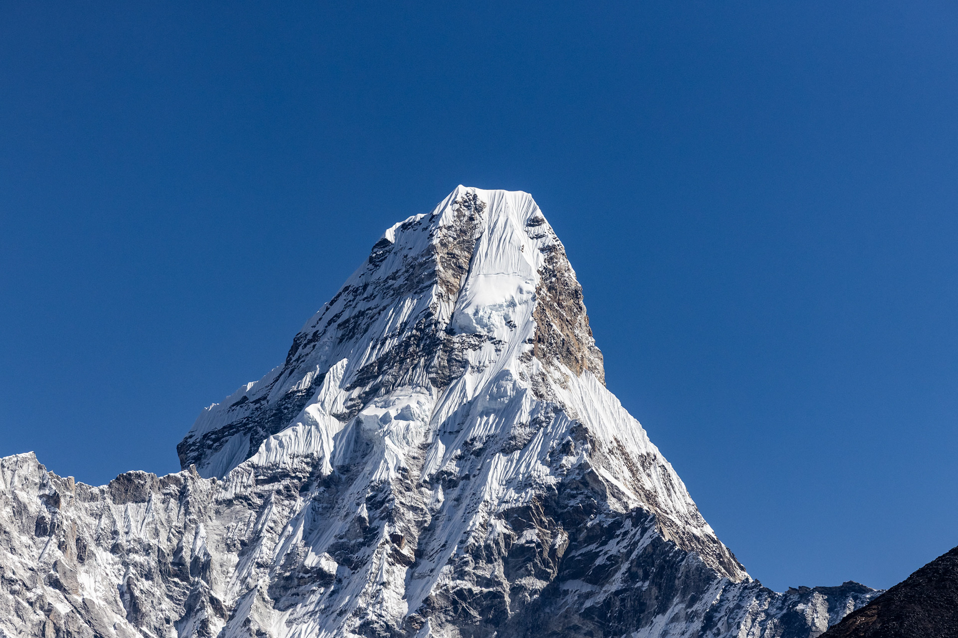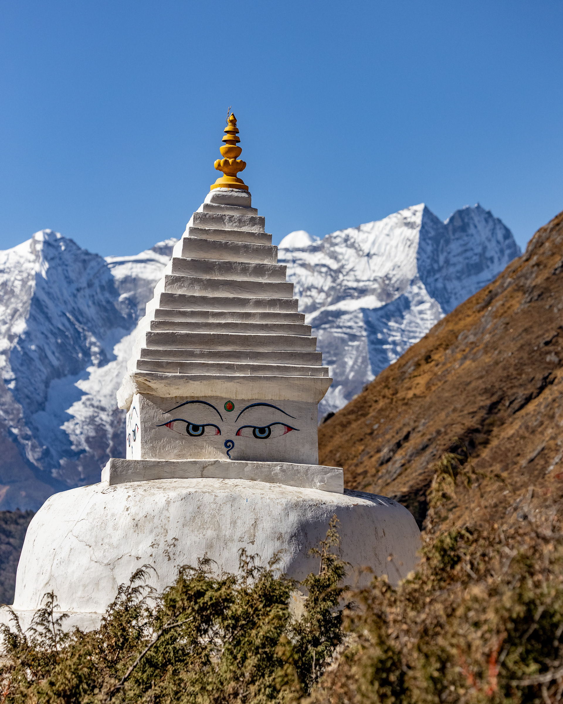 Jeder einzelne der Berge scheint eine unglaubliche Macht zu besitzen, monumental und unveränderbar. Dann, fast unerwartet, sehen wir ihn zum ersten Mal aus der Ferne: Der Mt. Everest mit seinen stolzen 8848m Metern. Jedoch scheint Größe nicht alles zu sein: mit seinen "nur" 6814m zieht der Ama Dablam meinen Blick viel eher an und stiehlt jedem anderen Gipfel die Show. Nicht umsonst wird er das „Matterhorn Nepals“ genannt.