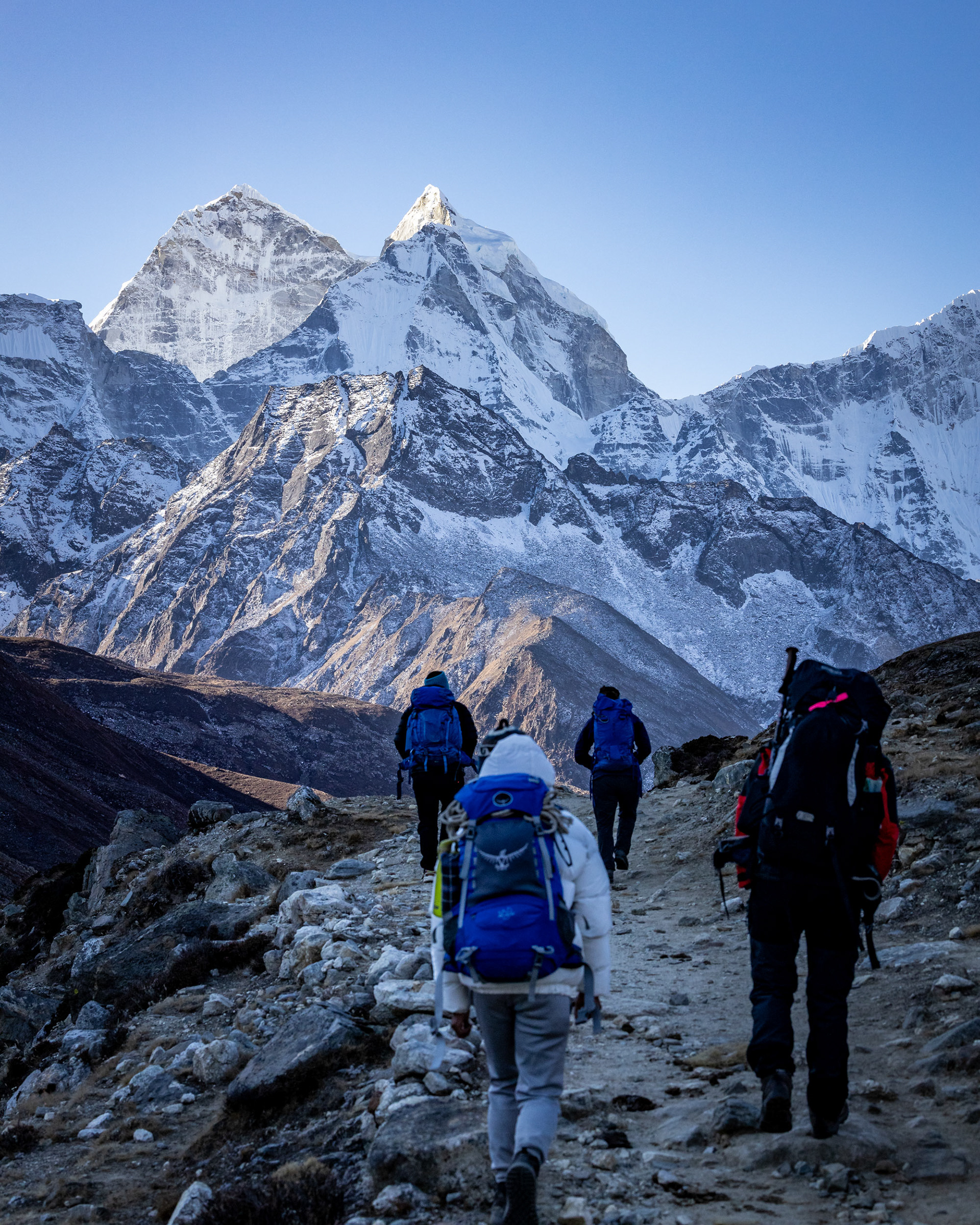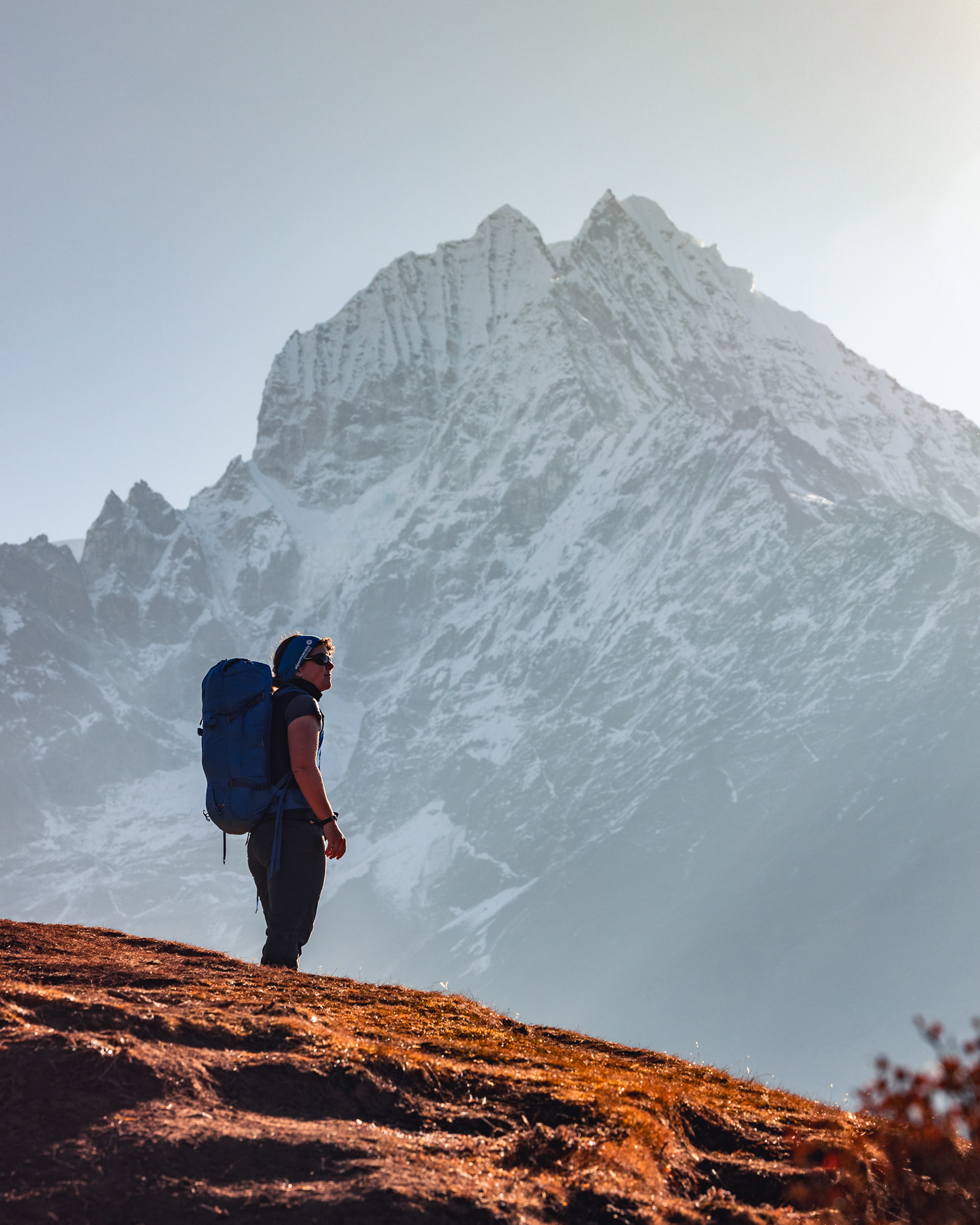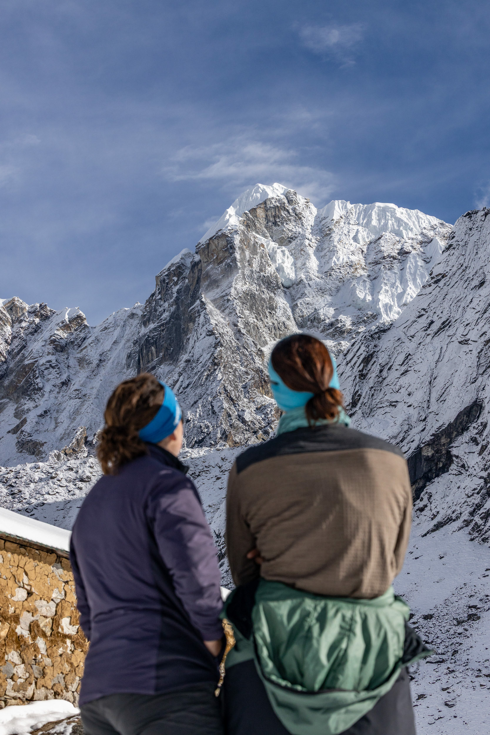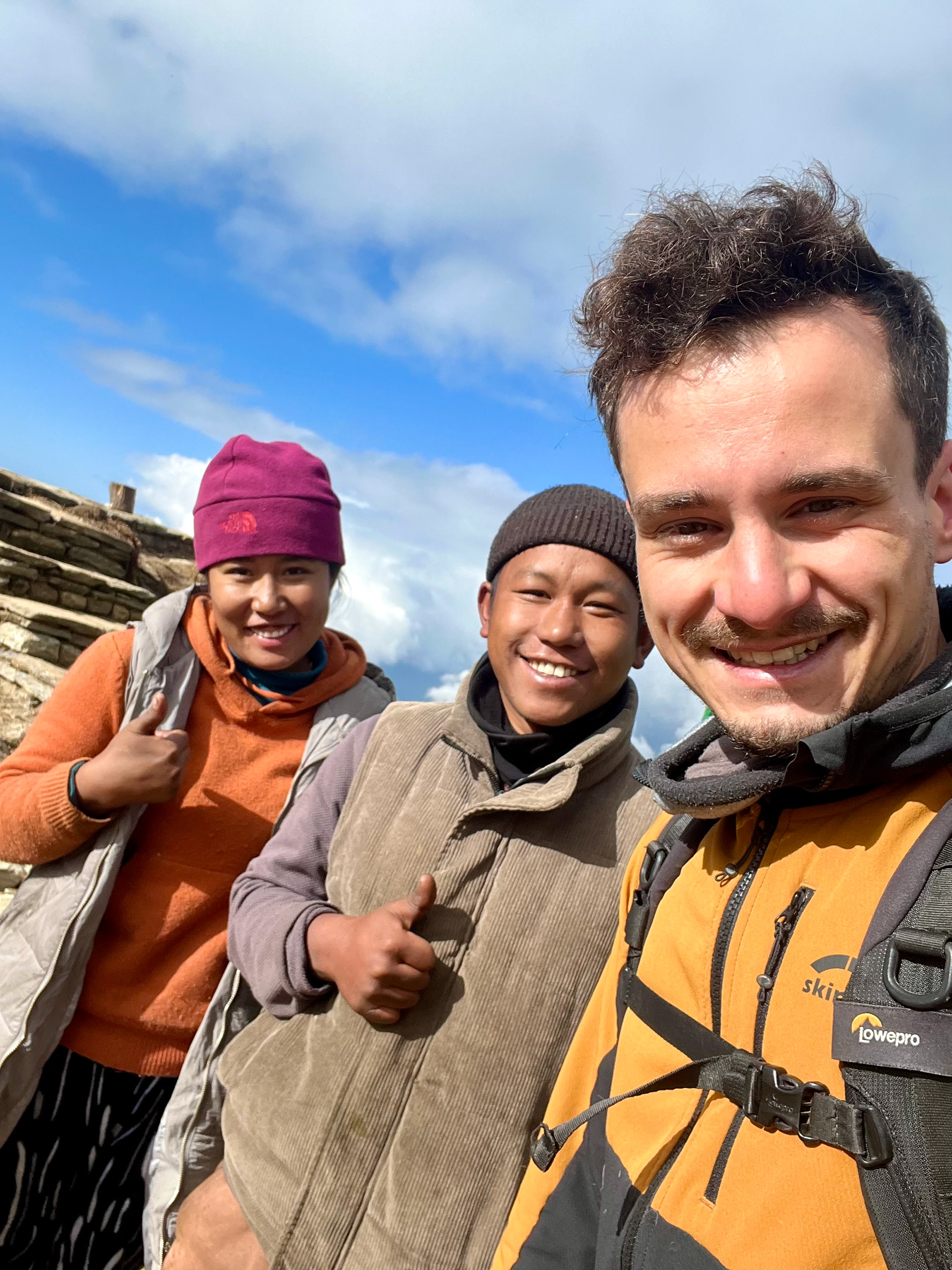Iniitiert wurde die Reise durch meine Cousine Angela, Mitglied der Alpinpolizei und Bergrettung. Ganz spontan und abenteuerlustig schloss sich noch Kollegin Hannah unserem Trek an – eine in Kathmandu tätige Ärztin aus Dornbirn, die wir erst eine Woche vor der Tour kennenlernten. Aller guten Dinge sind drei und so nahm das Projekt im Oktober 2024 finale Gestalt an. Für uns alle stellten die Berge schon immer eine zweite Heimat dar. Es ist zumindest für mich die erste Berg(hoch)tour dieser Art und während sich Angela Steigeisen usw. schon länger gewohnt ist, rätsle ich, wie ich das Gewicht meiner Kamera samt Objektiven auf 6000 Metern herumschleppe. Glücklicherweise war das Wetter während des gesamten Treks fast schon frühlingshaft, die meisten Meter konnten ärmellos im Tanktop zurückgelegt werden.