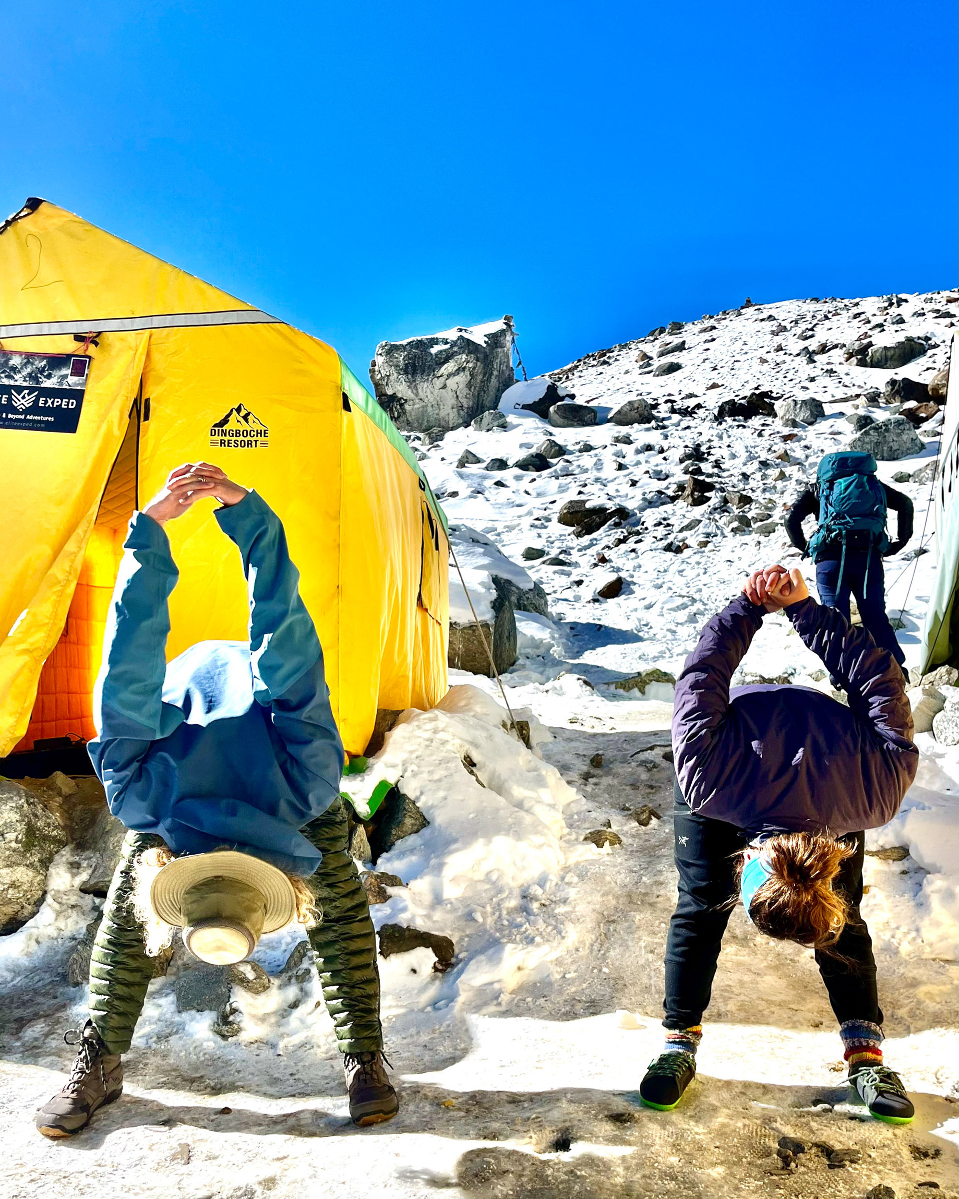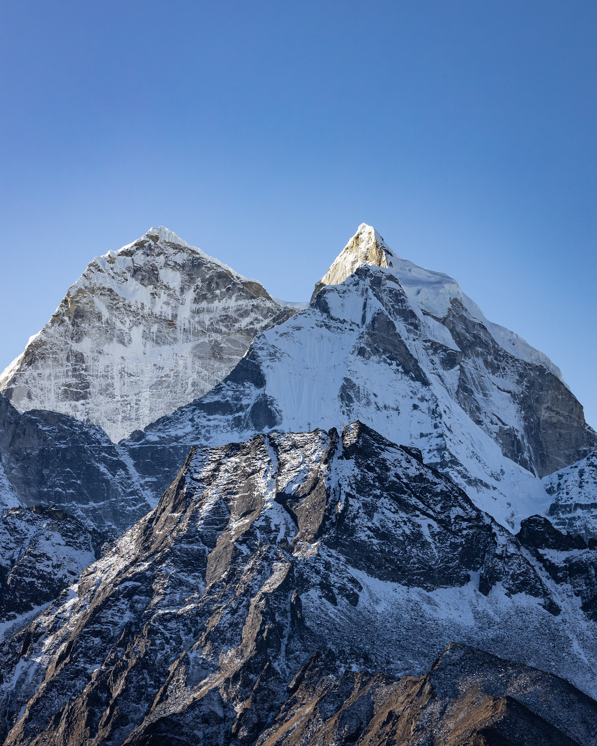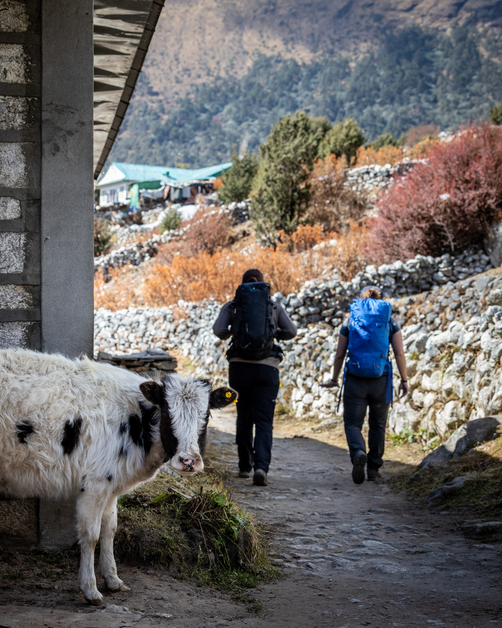 Iniitiert wurde die Reise durch meine Cousine Angela, Mitglied der Alpinpolizei und Bergrettung. Ganz spontan und abenteuerlustig schloss sich noch Kollegin Hannah unserem Trek an – eine in Kathmandu tätige Ärztin aus Dornbirn, die wir erst eine Woche vor der Tour kennenlernten. Aller guten Dinge sind drei und so nahm das Projekt im Oktober 2024 finale Gestalt an. Für uns alle stellten die Berge schon immer eine zweite Heimat dar. Es ist zumindest für mich die erste Berg(hoch)tour dieser Art und während sich Angela Steigeisen usw. schon länger gewohnt ist, rätsle ich, wie ich das Gewicht meiner Kamera samt Objektiven auf 6000 Metern herumschleppe. Glücklicherweise war das Wetter während des gesamten Treks fast schon frühlingshaft, die meisten Meter konnten ärmellos im Tanktop zurückgelegt werden.