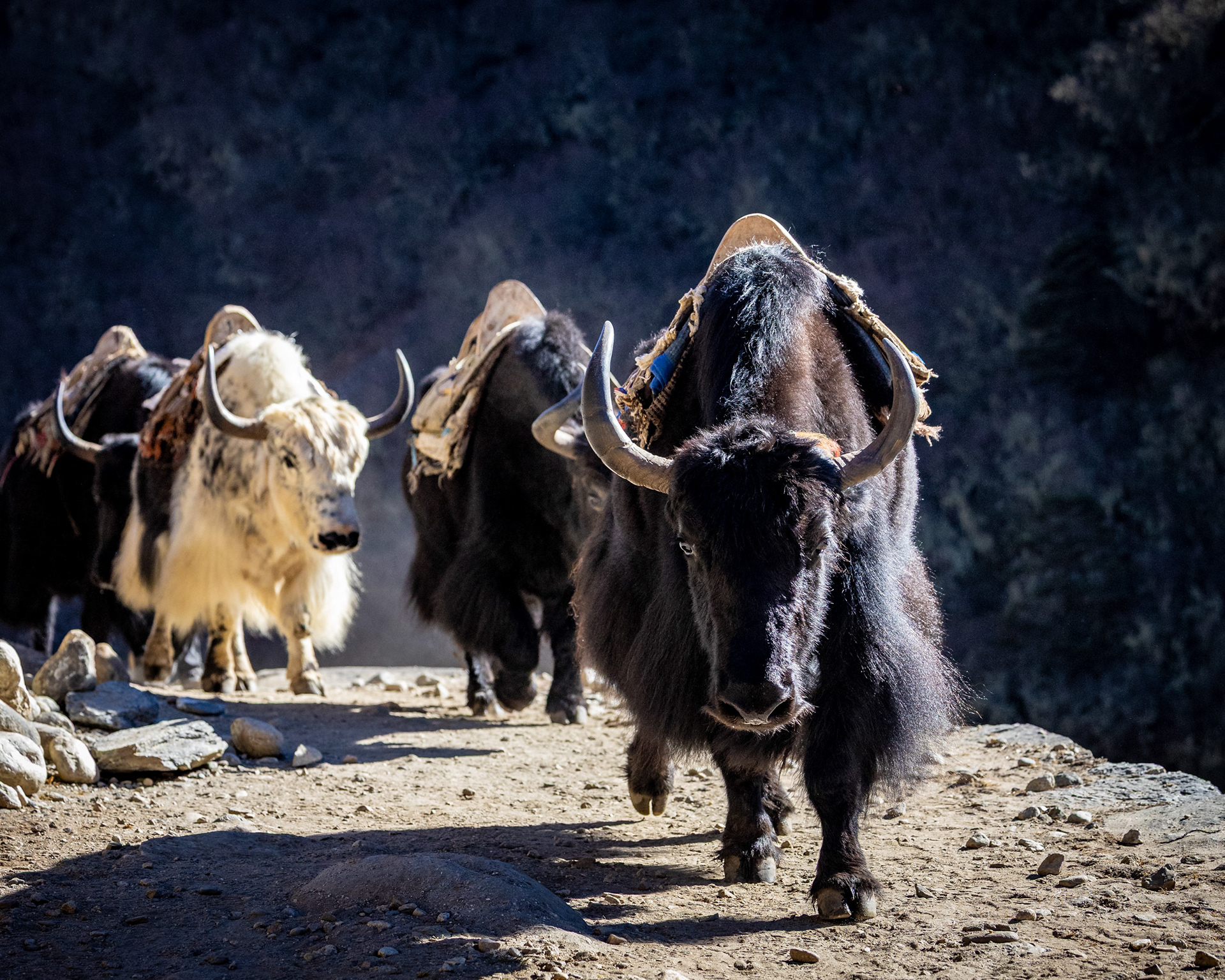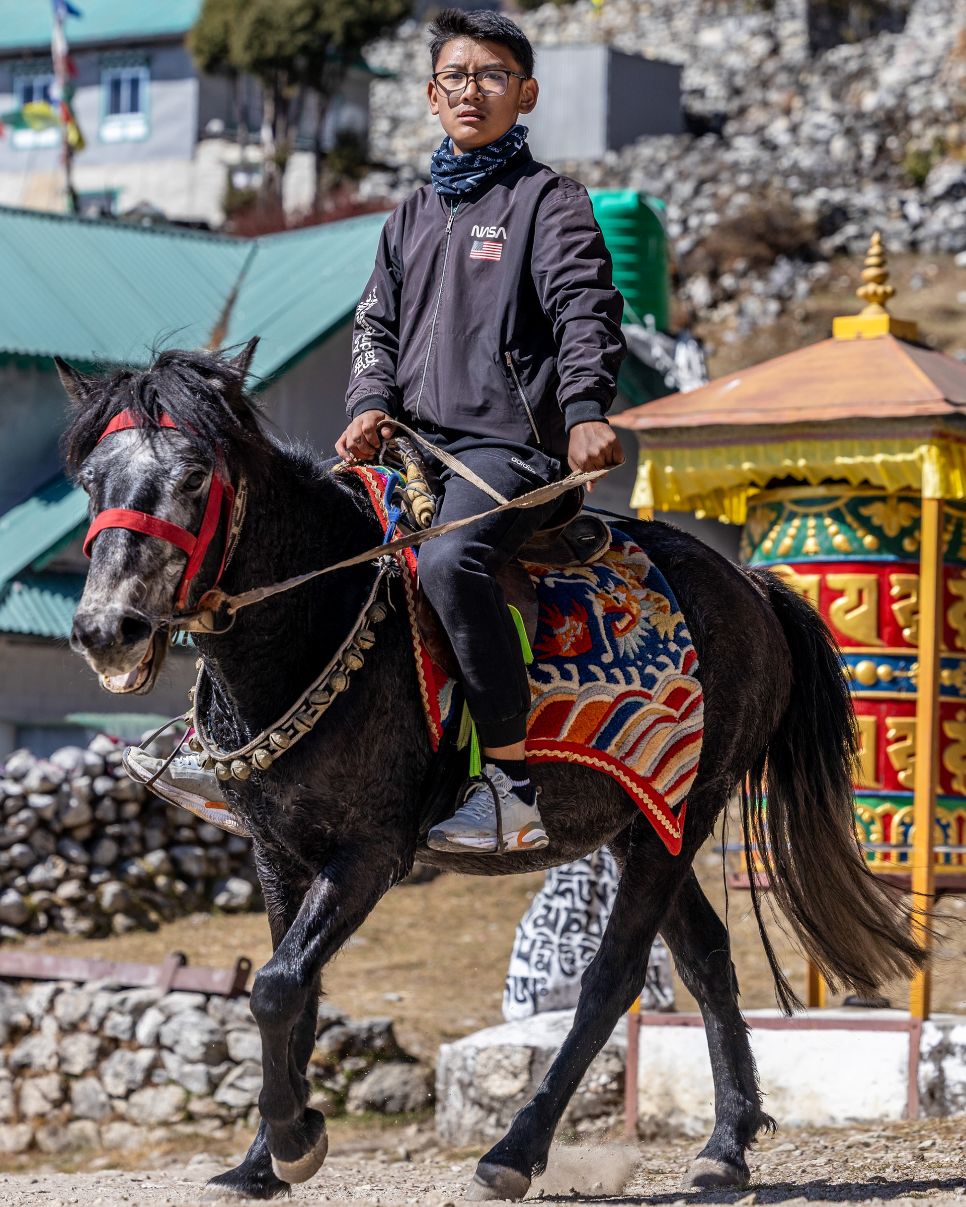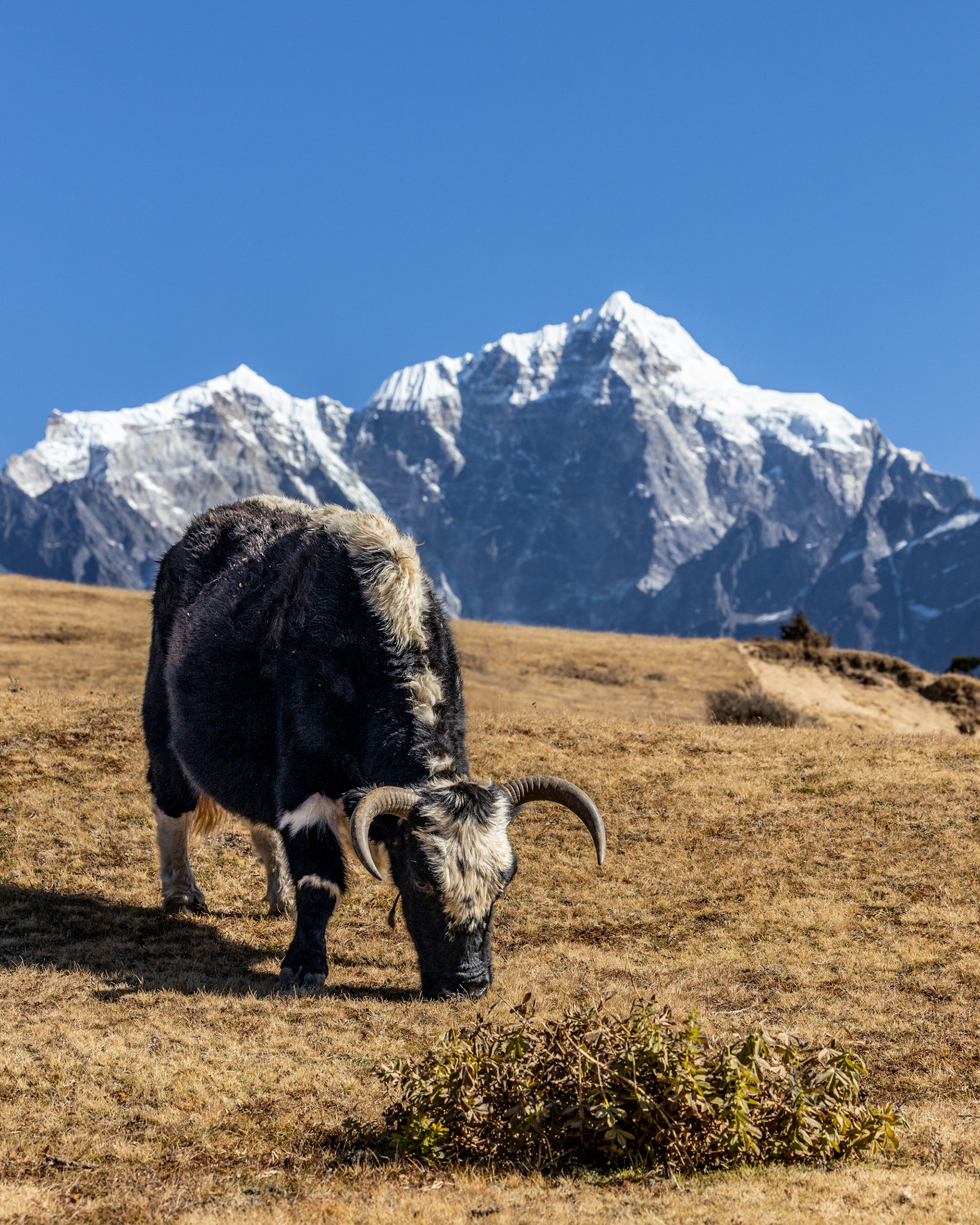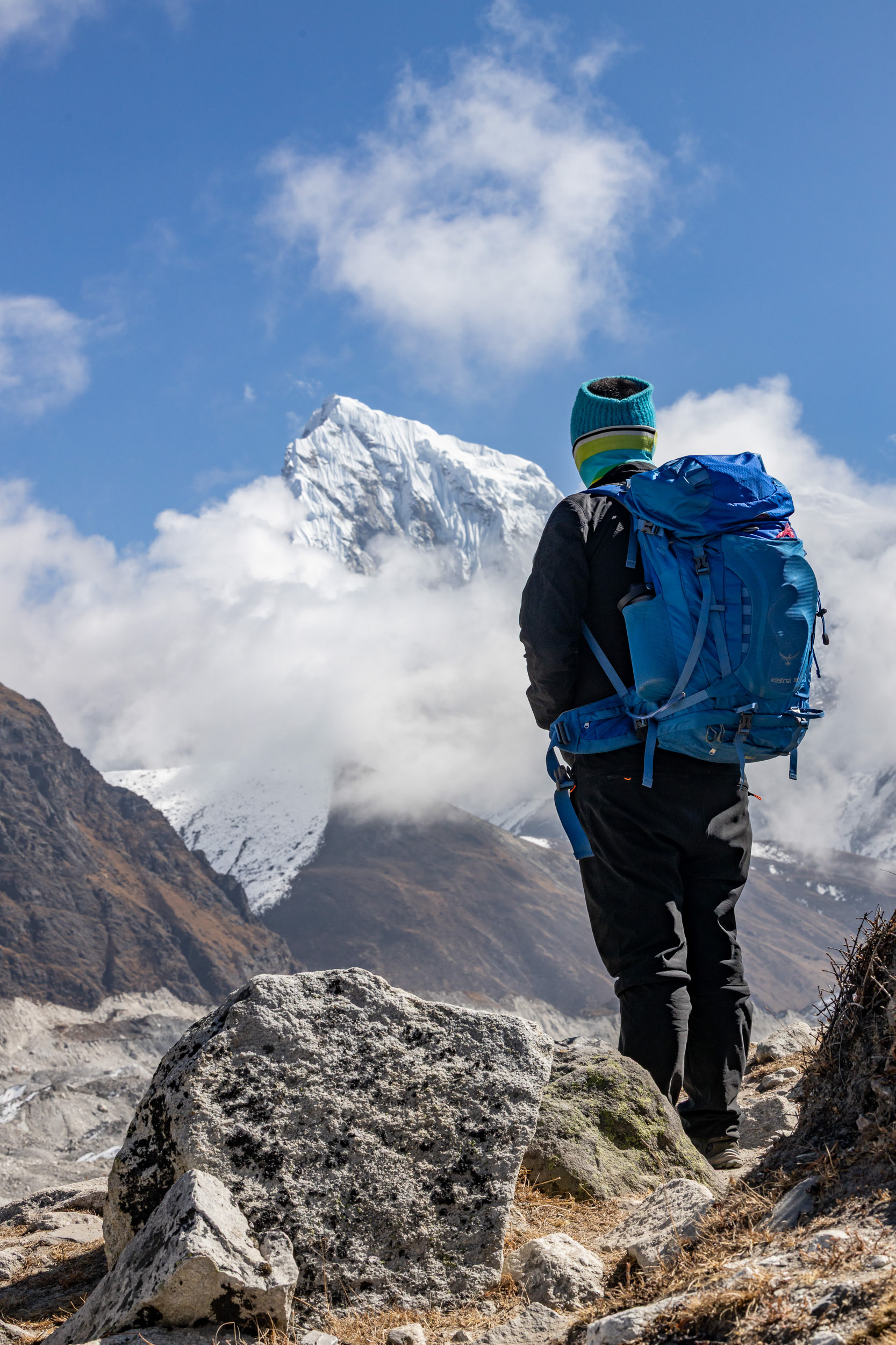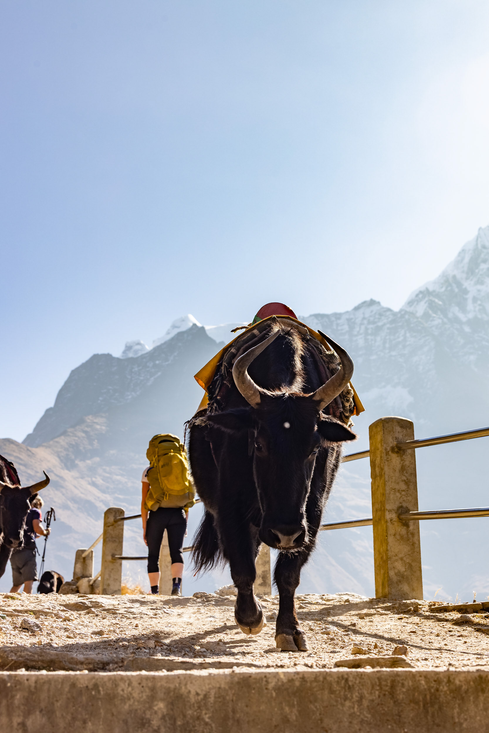 Am dritten Tag steht eine Akklimatisierungswanderung an, um uns erstmals an die 4000m-Marke heranzutasten. Unser Guide Yangda Sherpa, 33, der übrigens saisonsweise in Lech/Vorarlberg arbeitet, geht in ausgelatschten Turnschuhen und mit seinem Nike-Rucksäckchen voran. Auf eines ist immer Verlass: Die Gelassenheit und die innere Ruhe, die er mit sich bringt und die einen stets wieder erdet.