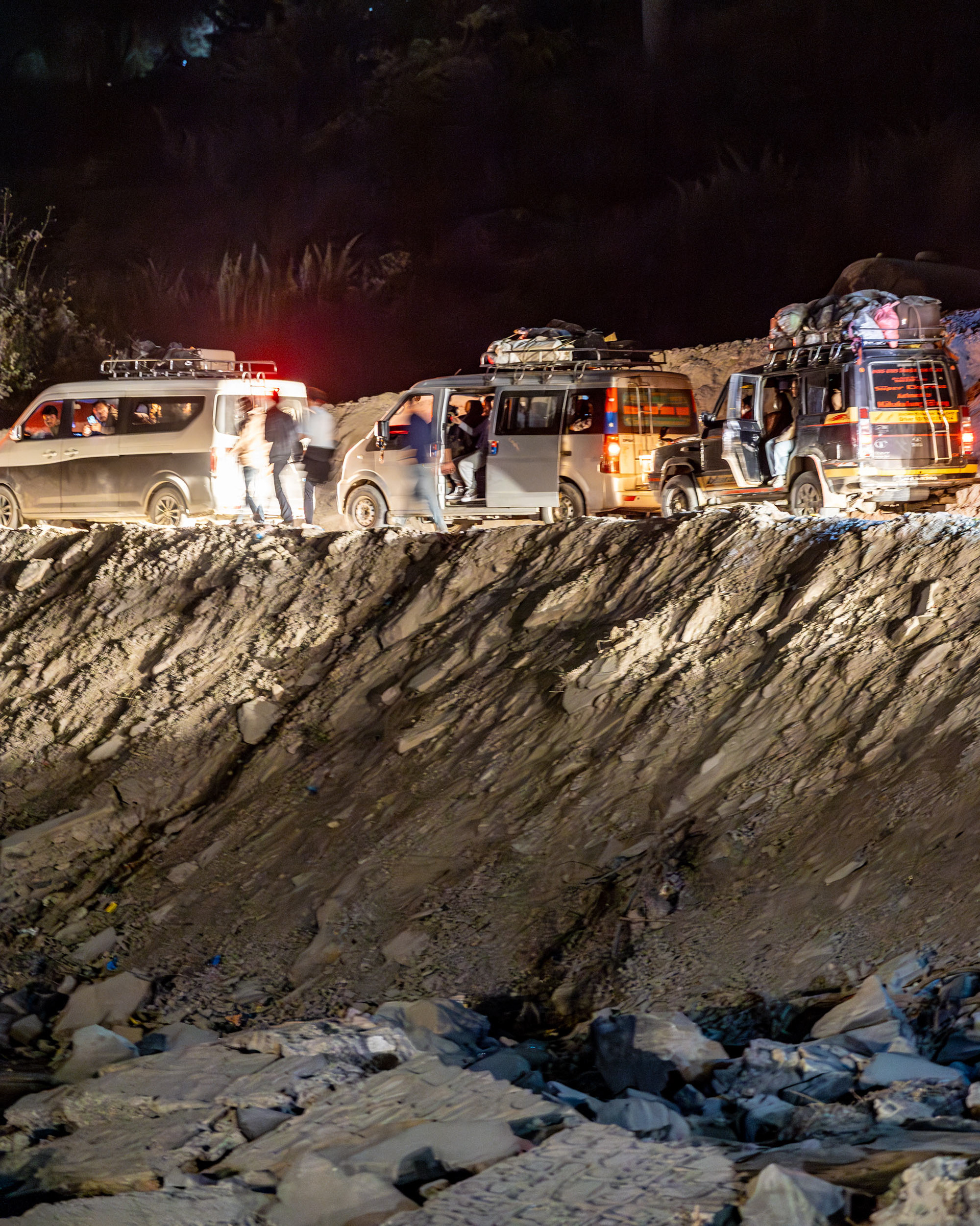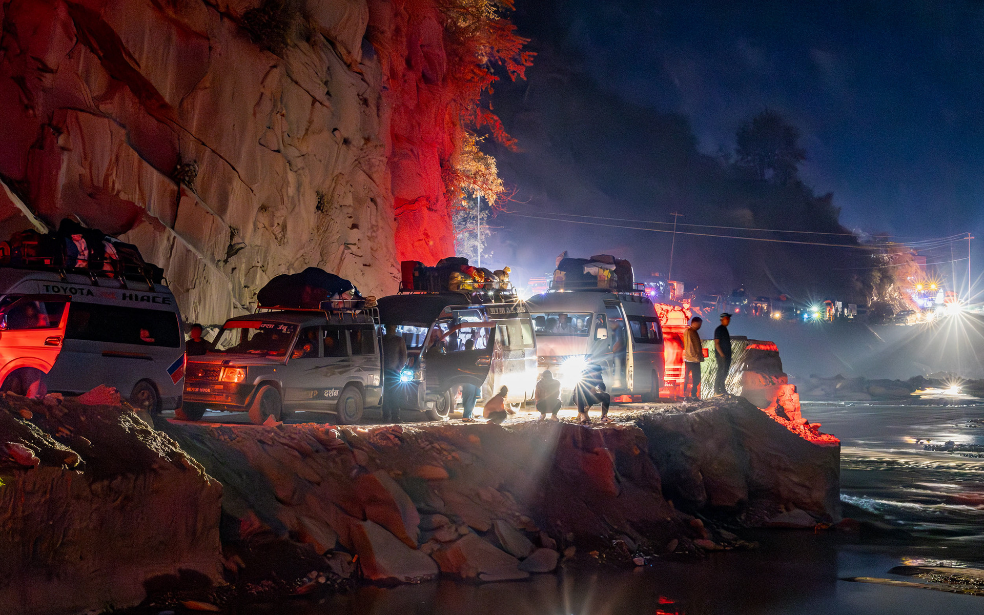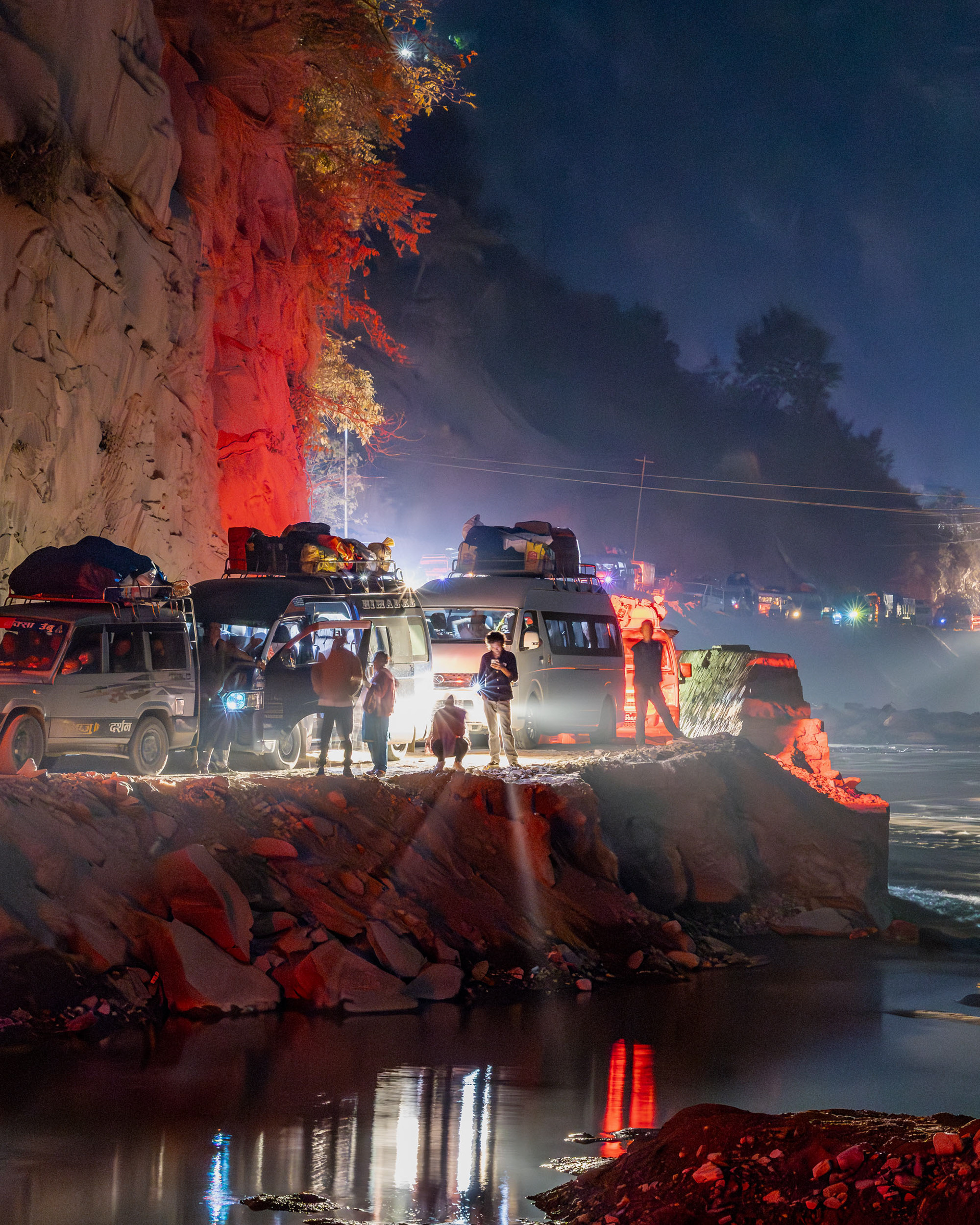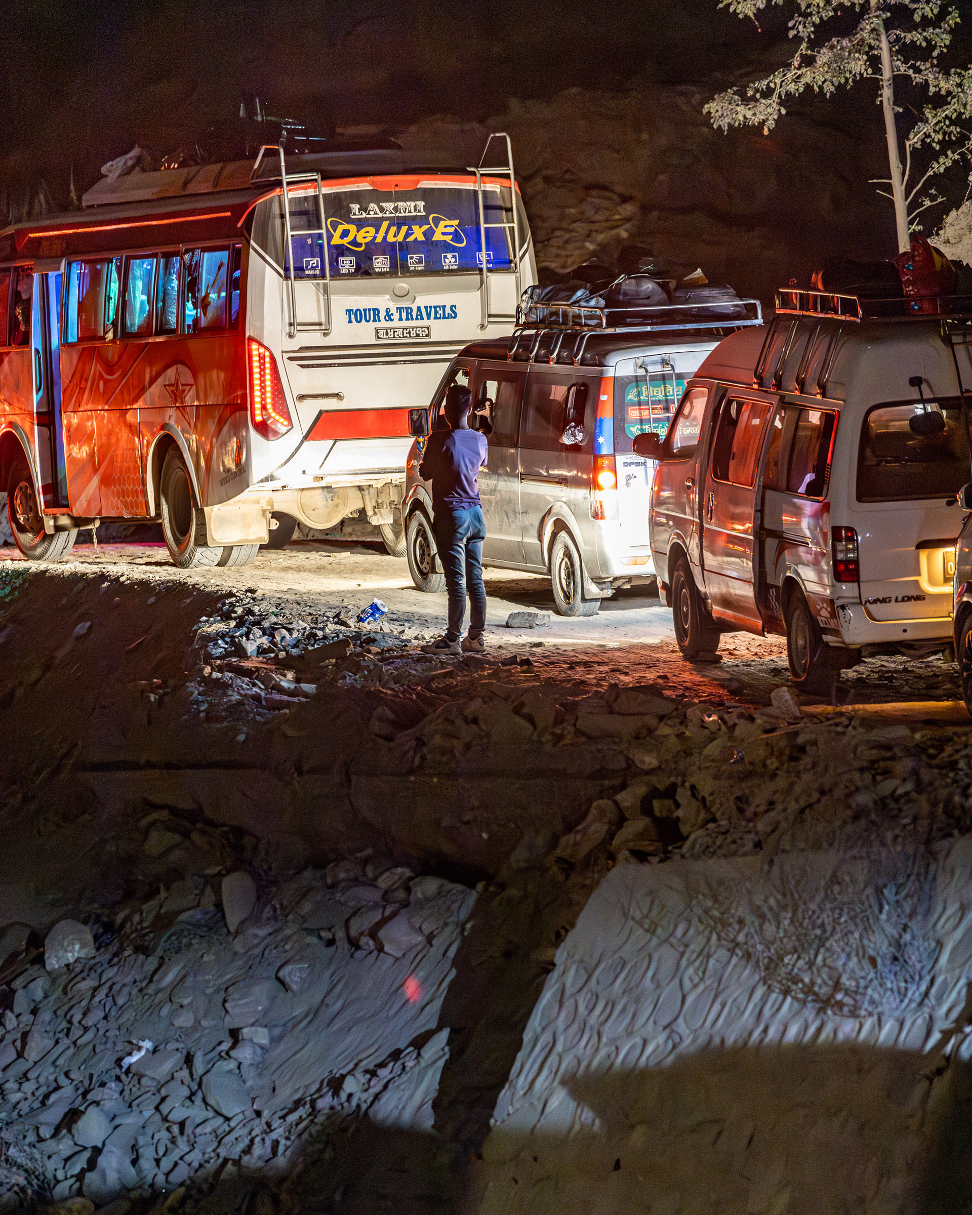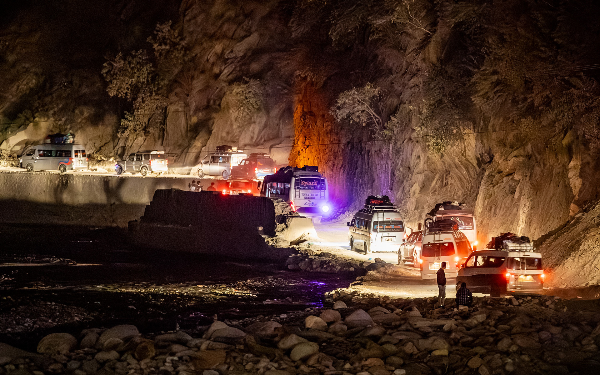 Geduld, Zeit und Vertrauen - das sind die Tugenden, um in Nepal von der einen Stadt in die nächste zu gelangen. In den bergigen Regionen Nepals ist die Straßeninfrastuktur oft temporär und in ständiger Gefahr, von Fluten und Erdrutschen weggespült zu werden. So erleben wir die Folgen der Zersörung der Flurkatastrophe im Sommer 2024 hautnah: unsere Jeepfahrt zurück nach Kathmandu führt durch Flussbette und weggespülte Dörfer und dauert 11 Stunden im Schneckentempo.