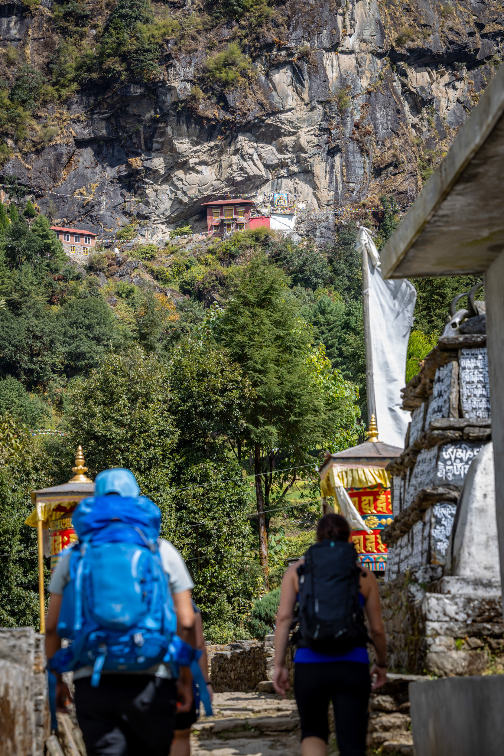 Die erste Etappe nach Phakding (2610m) startet gemütlich, wir erhaschen erste Blicke auf die naturbezogene und herzliche Lebensweise der nepalesischen Dorfbewohner und Sherpas. Während die (noch!) 6000er Berggipfel stets über einem wachen, gehören spontanes Teetrinken mit tibetanischen Mönchen aber langsam auch das Gewöhnen an die Höhe für uns zum Alltag. Eines sei gesagt: es ist kein Wunder, dass man beim Anblick dieser Landschaften und Berge spirituell wird.