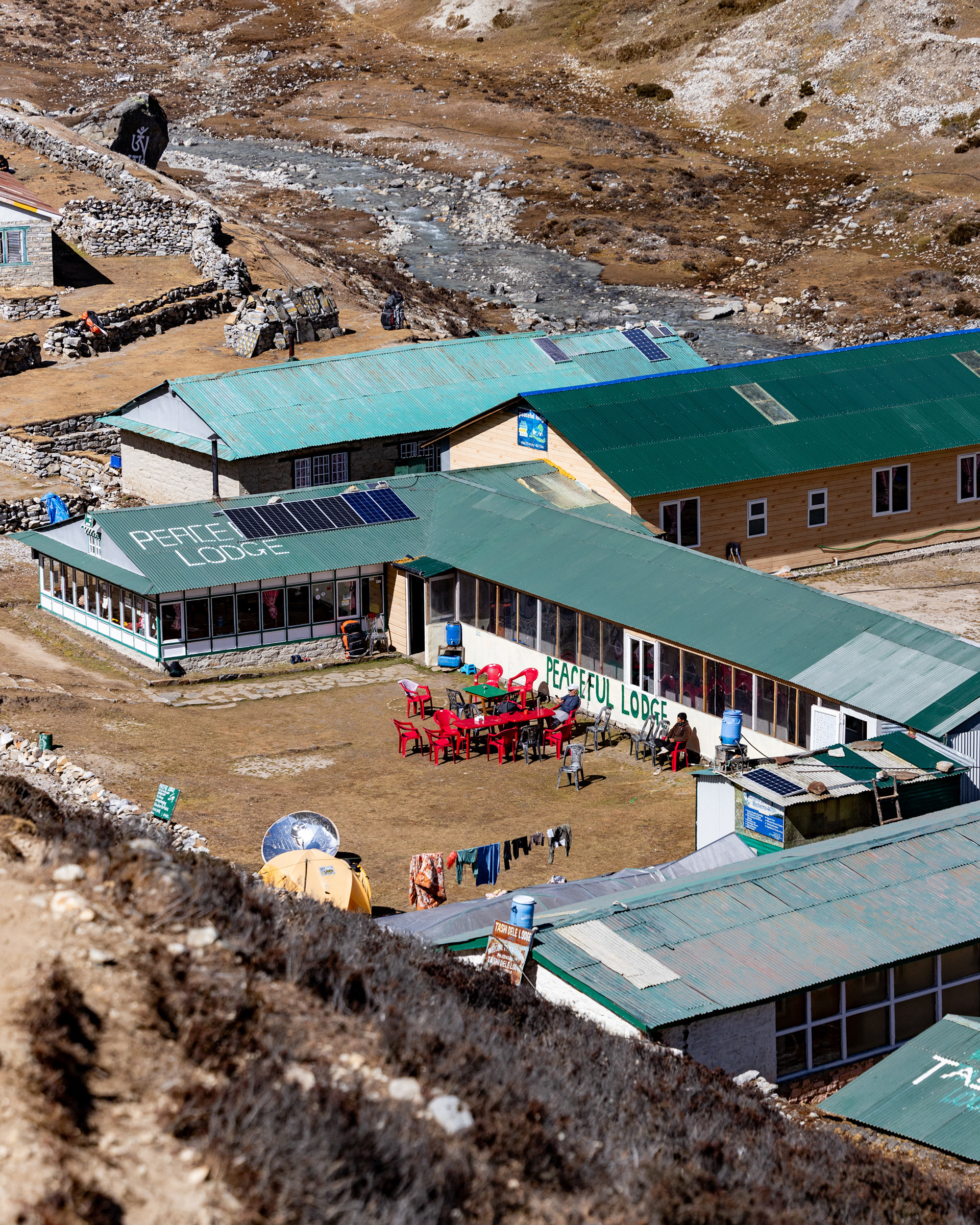 Wir lassen uns in den ersten abgelegeneren Lodges nieder, weg von den Massen, wo das Versammeln um den mit "Yak-Shit" betriebenen Ofen zum Abendritual und die Kälte langsam allgegenwärtig wird. Man lenkt sich ab mit Lebensgeschichten und Erzählungen darüber, was einen hier her brachte. Man trifft Polen, Russen, Amerikaner, in der Schweiz wohnhafte Nepalesen, 60-jährige Französinnen, die einen 6000er besteigen wollen, sogar ein paar Vorarlberger - die Wirtin der Alpenrose Ebnit - und solche, die einfach schon immer hier waren und auch keinen Grund haben, dies zu ändern...