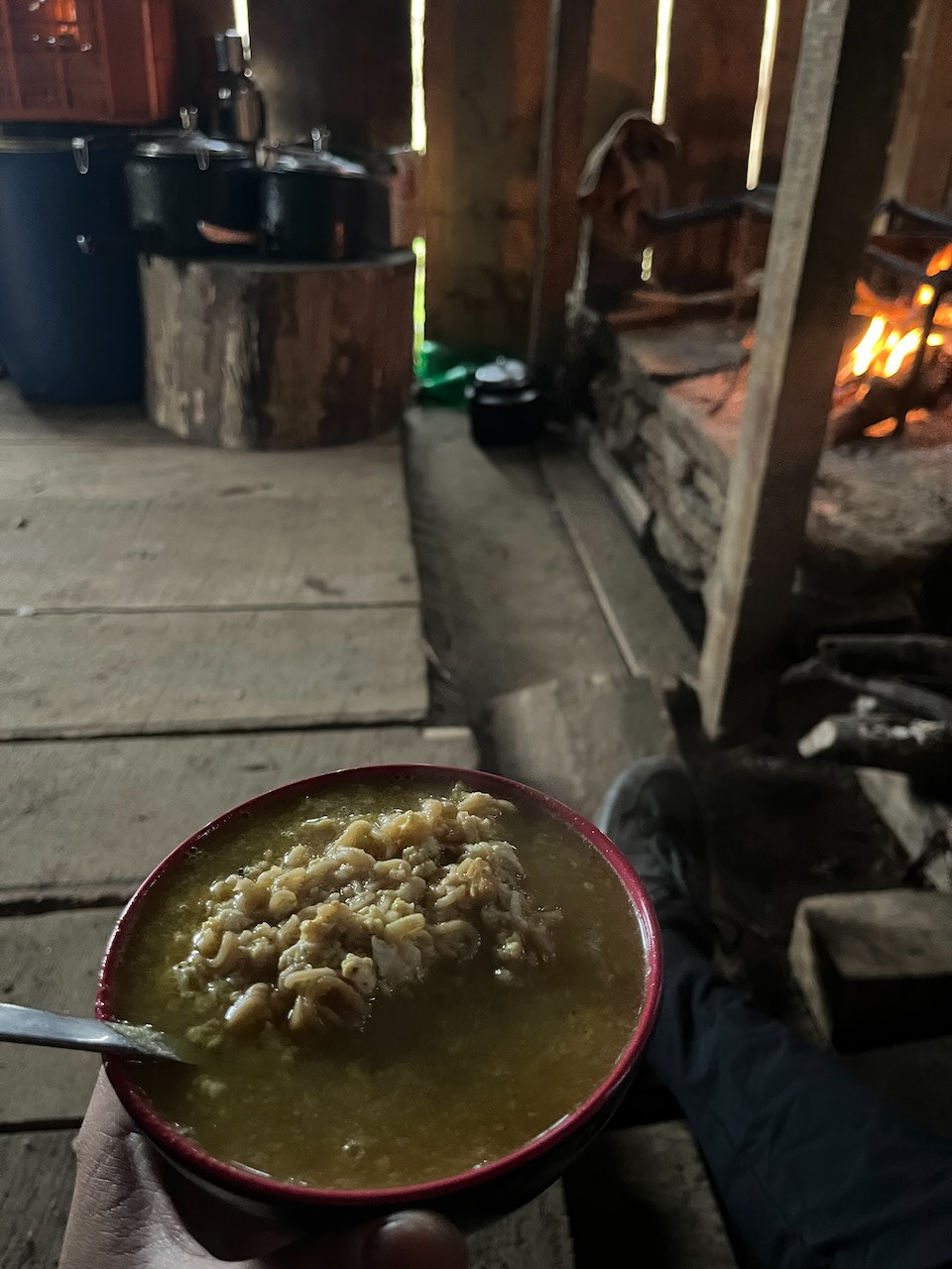 So werde ich in meiner Not von einem gastfreundlichen Bergbewohner mit einer Nudelsuppe in einem Bretterverschlag bekocht und stehe vor der Entscheidung wenige Stunden vor der Dämmerung noch 2000 Höhenmeter zu bewältigen, was in dieser Höhe ein gefährliches Unterfangen sein kann. Den aufmunternden Worten der Einsiedler muss ich fast Folge leisten: „Come on, you got this, you’re like Bear Grylls!“