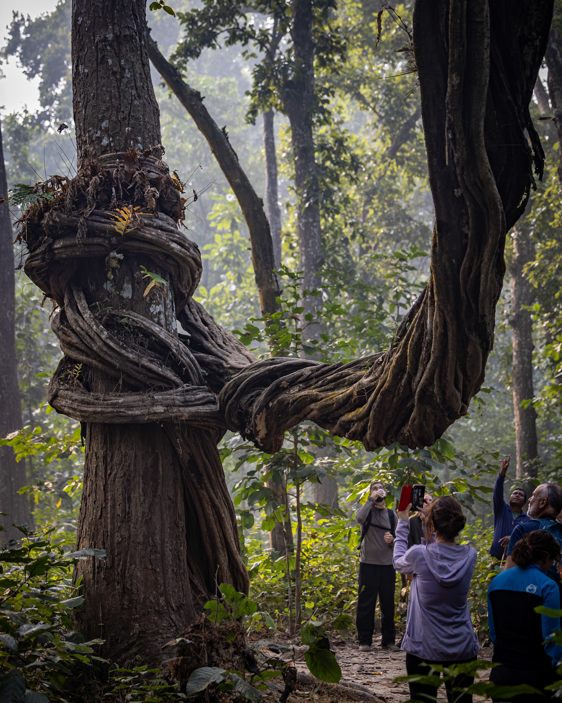Nepal lässt sich geografisch grob in zwei Hauptregionen einteilen: die bergige Himalaya-Region im Norden und die flache, feuchtere Terai-Region im Süden an der Grenze zu Indien. Hier befindet sich der Chitwan Nationalpark, in dem wir drei Tage Jungel- und Safarileben verbringen. Neben offensichtlich spektakulären Sichtungen von Elefanten, Krokodilen, Echsen, baumtötende Würgepflanzen und meterhohen Thermitenbauten ist das Zusammenleben mit diesen Kreaturen gleichzeitig eindrücklich und amüsant: niemals werde ich das Nashorn vergessen, das gemütlich zwischen Autos und Marktständen umherschlendert. Oder die Anweisung unseres Guides, einem Affen niemals in die Augen zu schauen. Die Sichtung eines Tigers auf der Safaritour bleibt uns leider (oder glücklicherweise?) verwehrt.